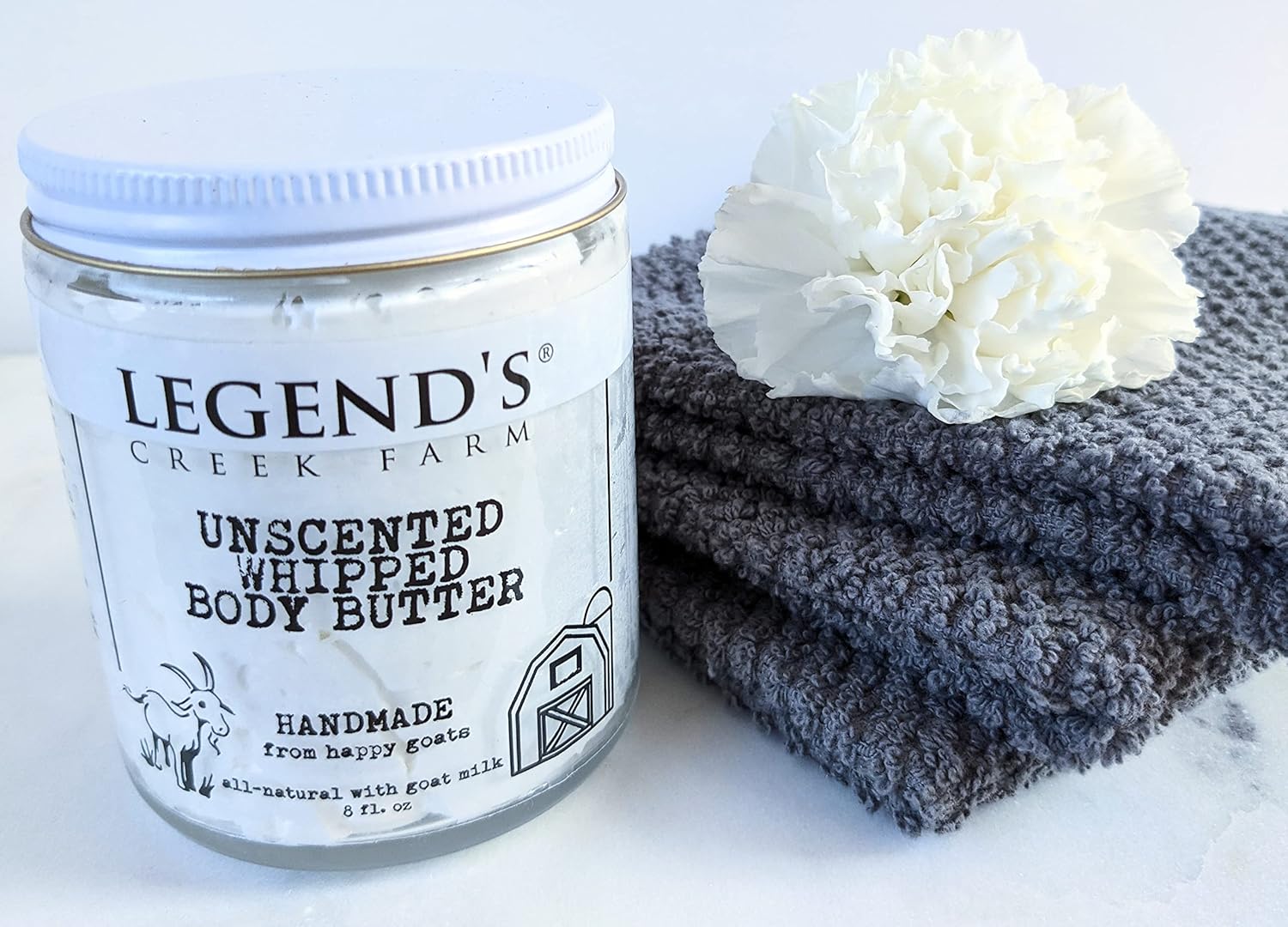 Legend's Creek Farm, Goat Milk Body Butter - Hydrating Natural Body Moisturizer with Organic Shea Butter & Grape Seed Oil - 8 Oz Purifying & Toning Whipped Body Butter (Unscented)
