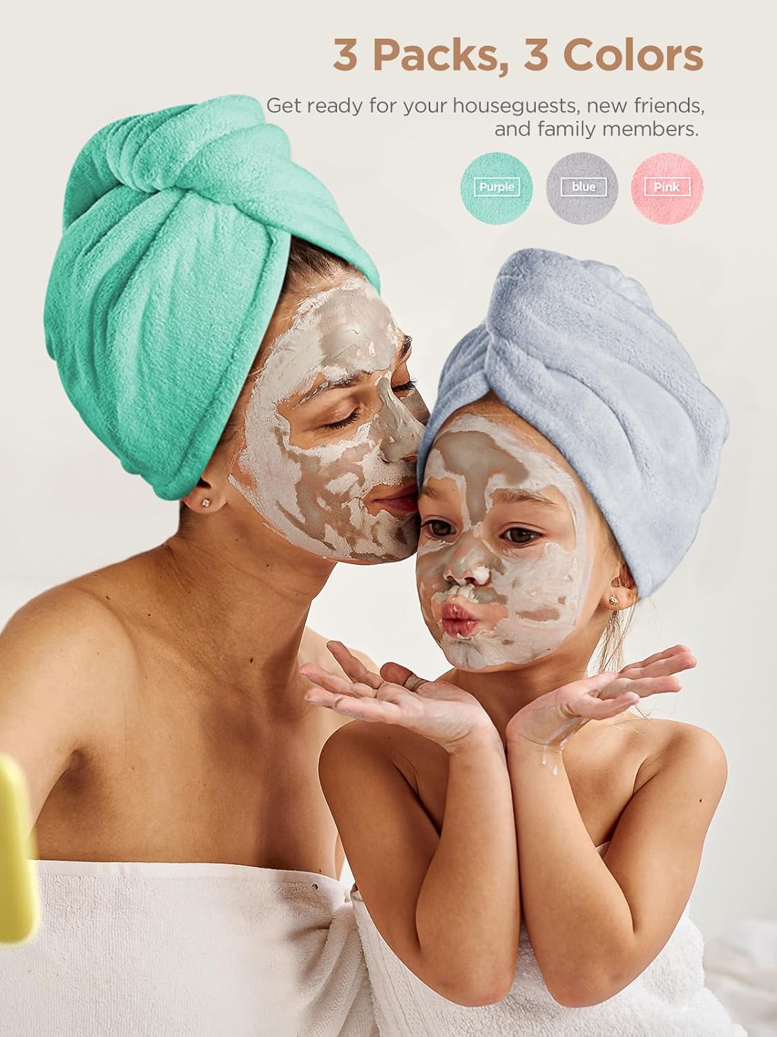 Hicober Microfiber Hair Towel, 3 Packs Hair Turbans for Wet Hair, Drying Hair Wrap Towels for Curly Hair Women Anti Frizz (Pink,Blue,Green)
