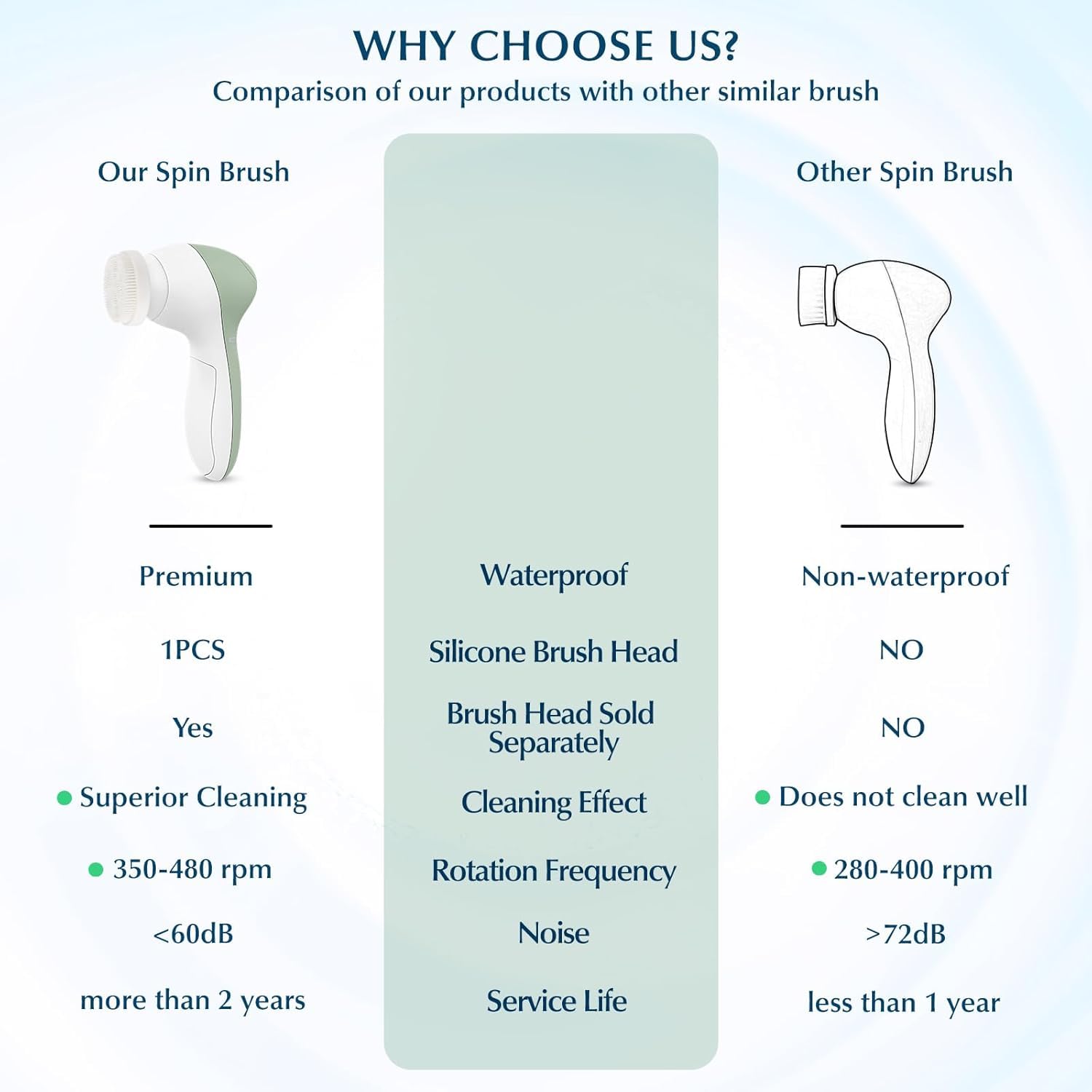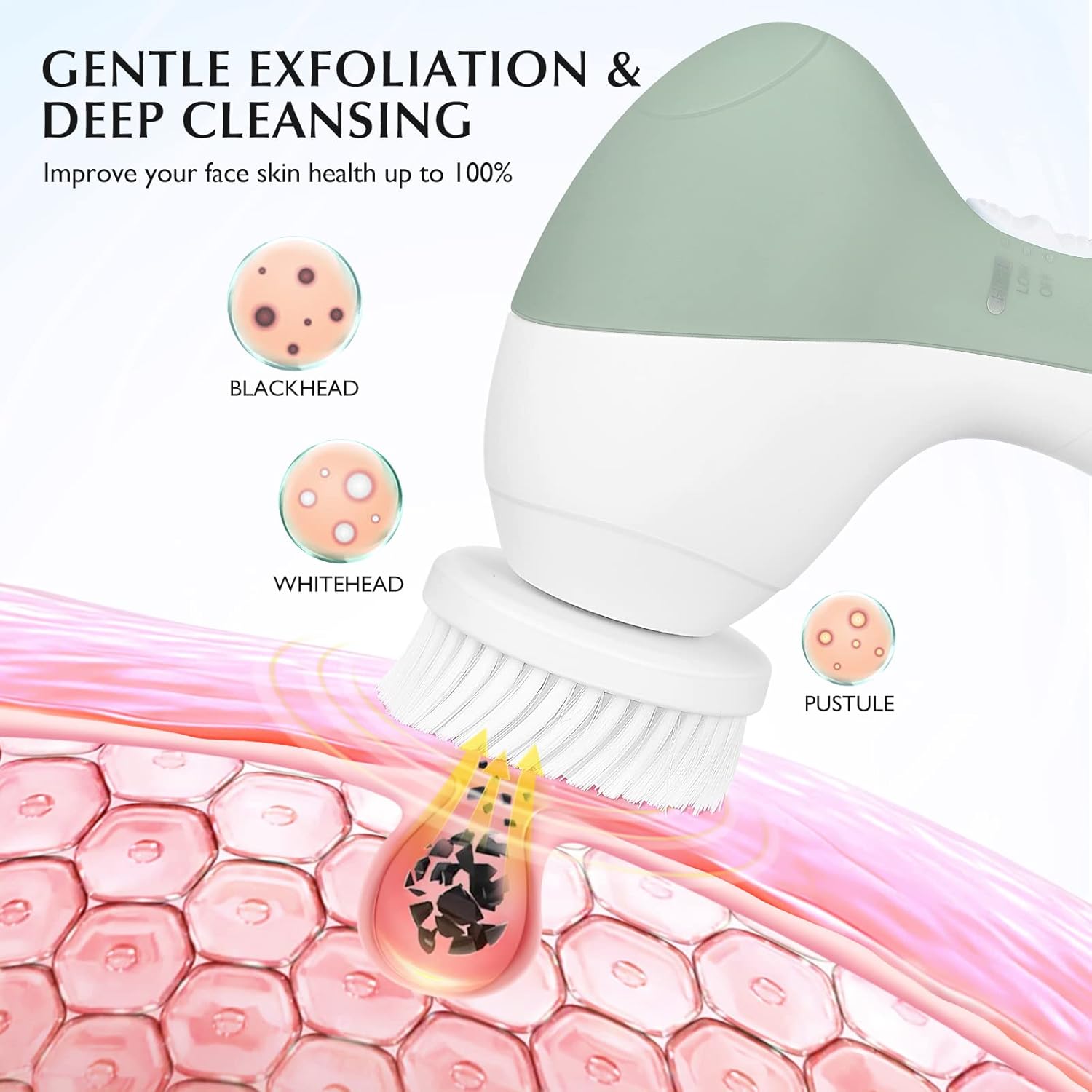 COSLUS Facial Cleansing Brush Silicone Face Scrubber: 7 in 1 FBS-D Electric Exfoliating Rotating Massage Device Waterproof Deep Cleaning Exfoliation Spa Machine - Electronic Skin Care Wash System