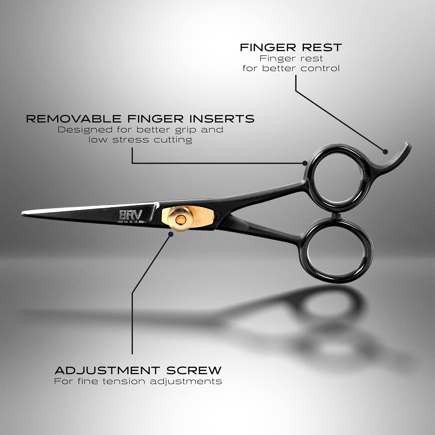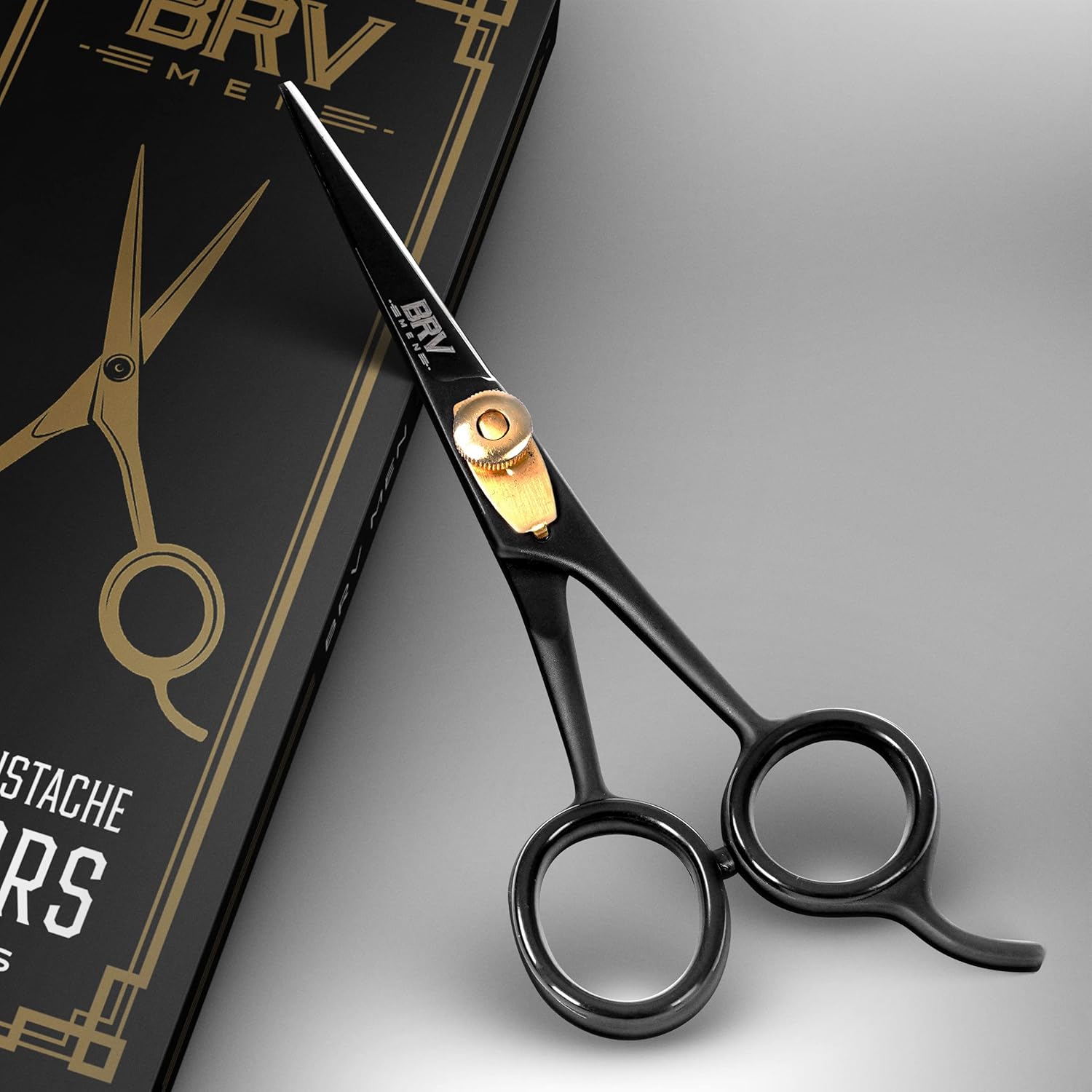 BRV MEN Razor Sharp Beard & Mustache Scissors - 5" - High Carbon Stainless Steel - Facial Hair Trimming Shears - RIGHT HANDED, Black