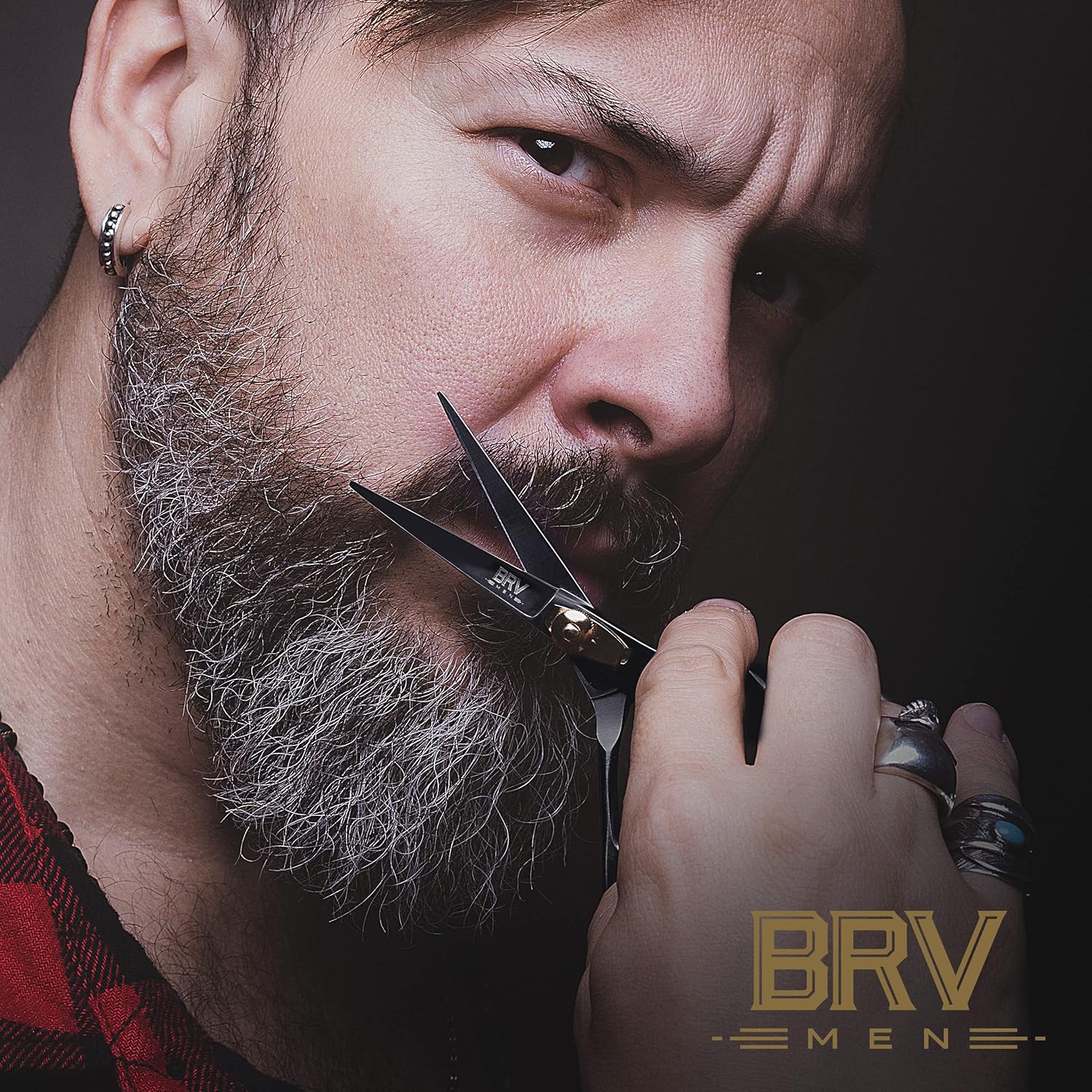 - QUALITY IN A MULTI-PURPOSE TOOL Grooming is a private pleasure best enjoyed with products you trust, and that represent the man you are. Our BRV MEN scissors are ergonomically designed to a professional standard, and are ideal for all the precision that trimming requires. From mustache to beard, and from sideburns and eyebrows you’ll need no other tool. Grooming Scissors For Men.