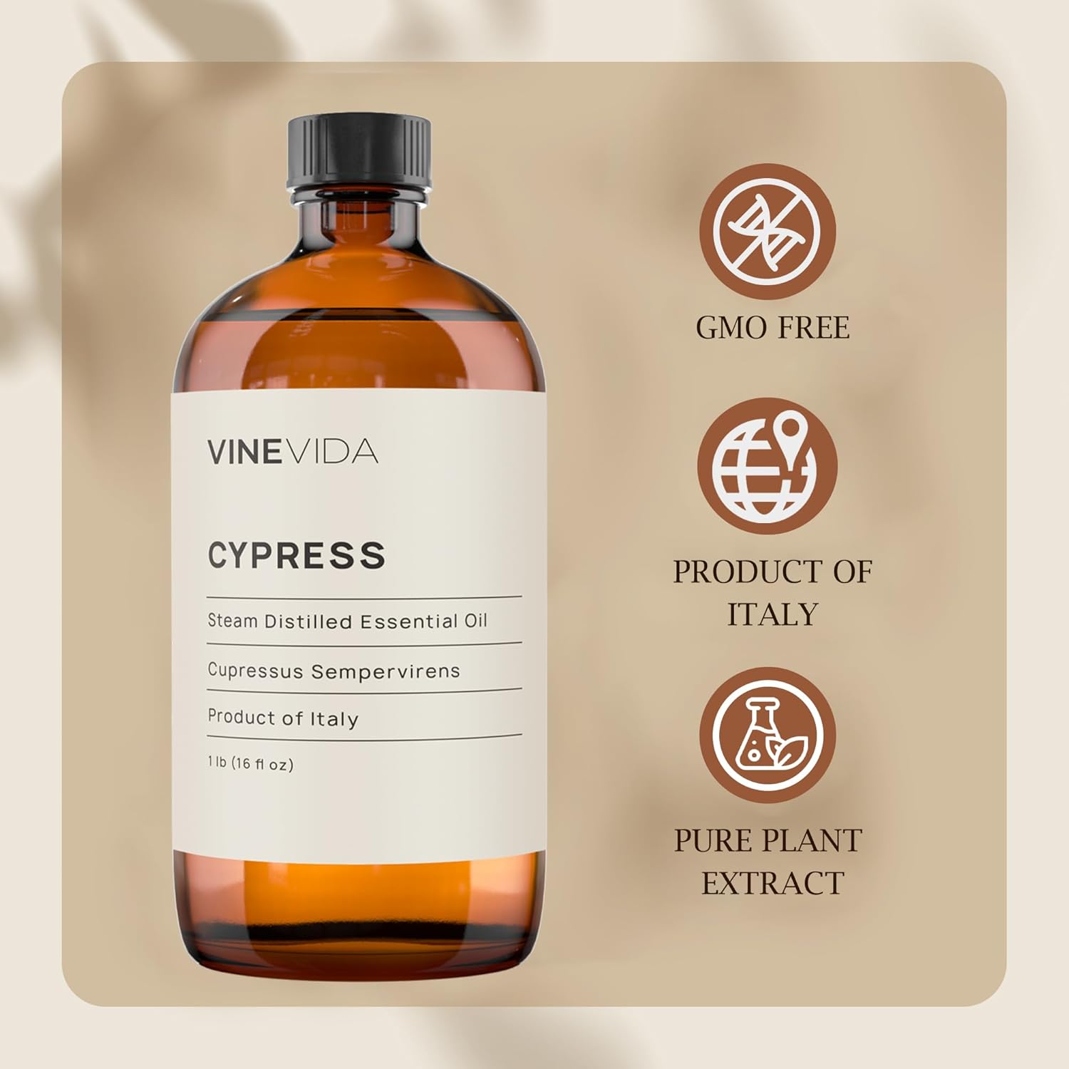 VINEVIDA Cypress Essential Oil 16 oz - Undiluted Cypress Oil - DIY Candle Scents for Candlemaking - Bulk Essential Oil for Soap Making Safe for Skin