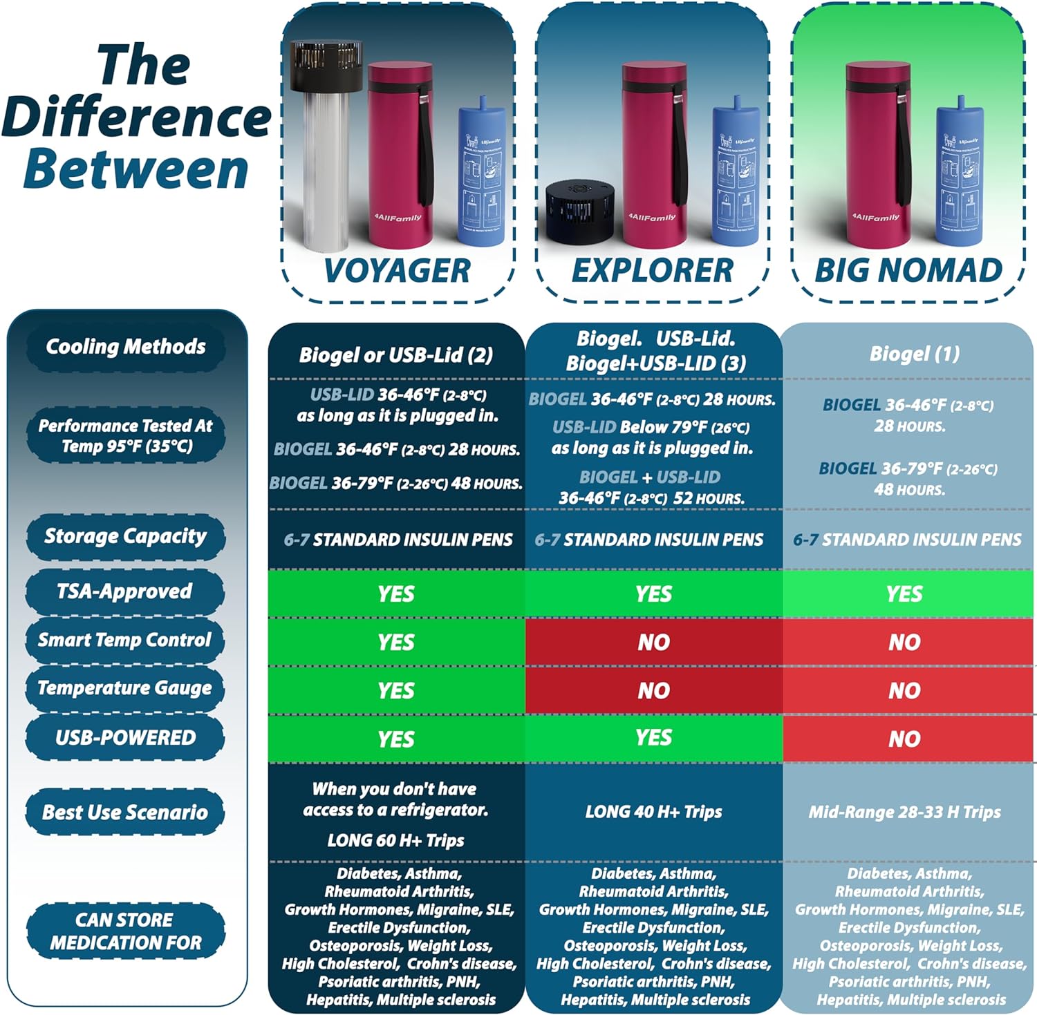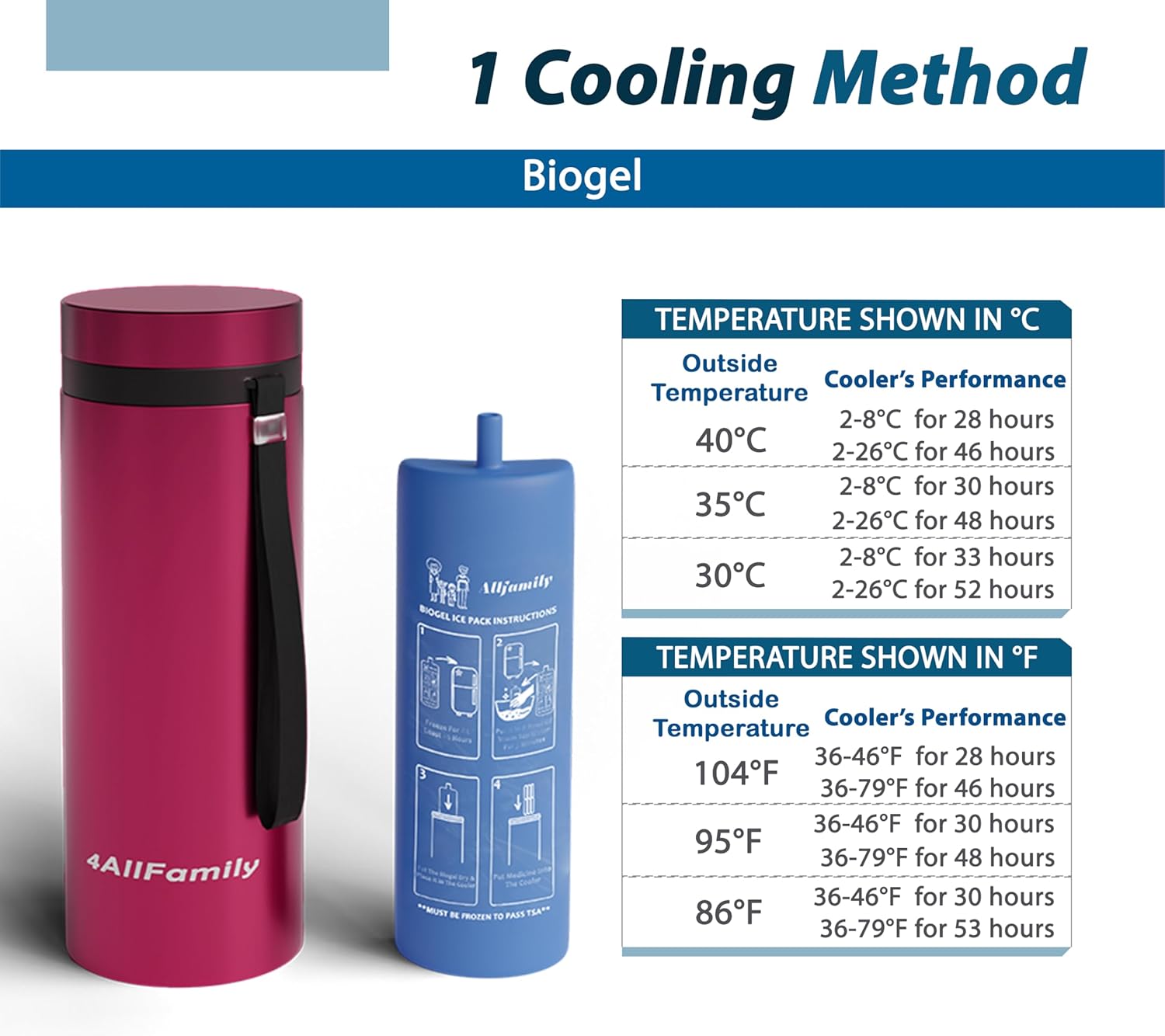 - ADVANCED BIOGEL TECHNOLOGY: Eliminate melted water packs & frozen meds, our Biogel freezes at 36°F to keep a stable range, protecting medicine from damage; this medicine cooler for travel TSA approved design is reusable and practical