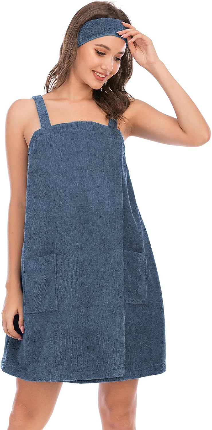 Veseacky Women Bath Wrap Towel for Womens Shower with Pocket Adjustable Spa Robe & Facial Headband