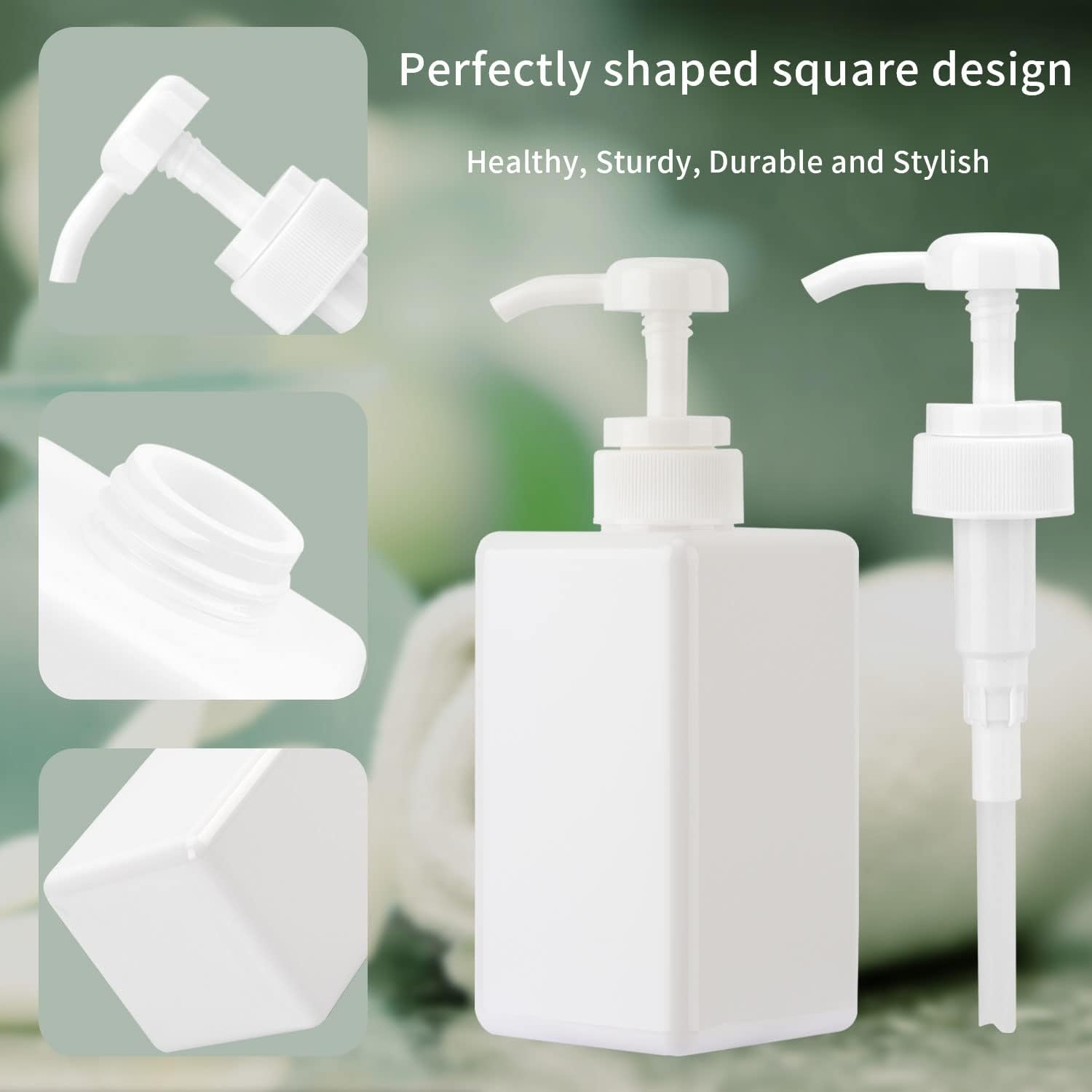 450ml (15.2oz) Pump Bottle Dispenser Jansburg 2Pack Refillable Square Plastic Lotion Dispenser Empty Lotion Pump Bottle for Essential Oil Soap Lotion Shampoo, Bathroom/Kitchen/Travel White