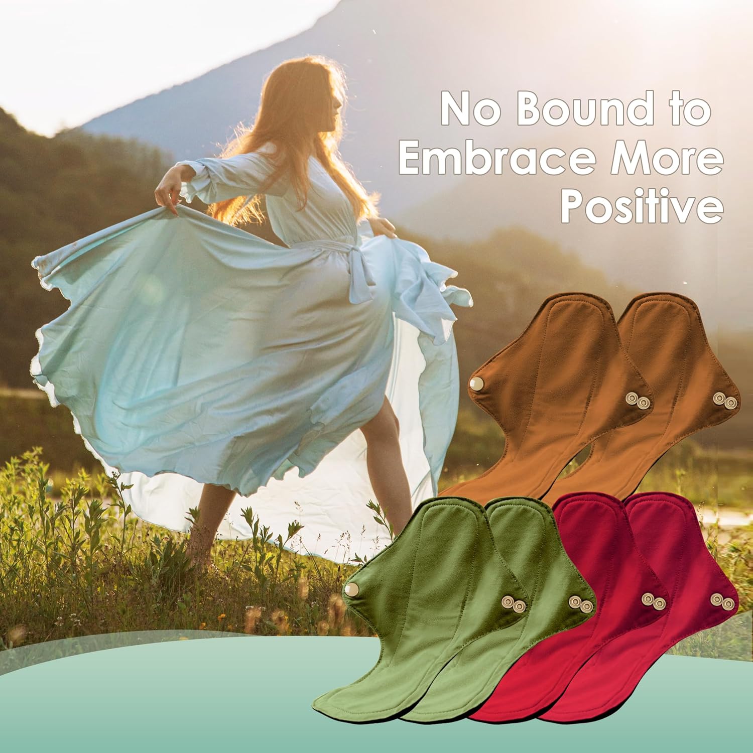 wegreeco 6 Pcs Reusable Menstrual Pads, Ultra Absorbent Cloth Pads for Heavy Flow, Sanitary for Teens, Women, Nonslip, Inner Aqua, Burgundy, Coffe, Rose Gold Outer, L