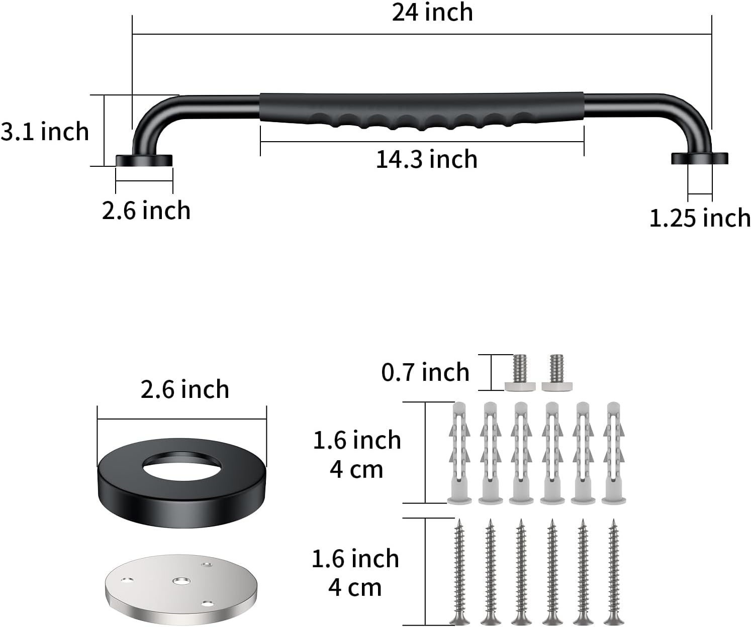 - ZUEXT 2 Pack 24 Inch 1.25" diameter SUS304 Stainless Steel Oil Rubbed Black Shower Grab Bars with non-slip soft rubber grip; Our anti-slip shower grab handle bar features a convenient design, it come with the mounting screws and anchors for easy installation.