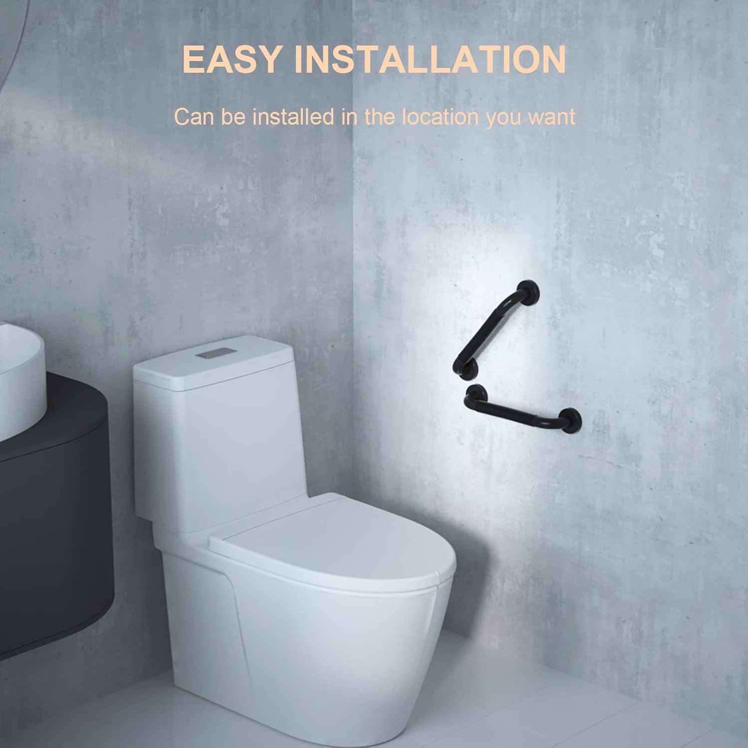 - The special design like the grip portion as it keeps you sturdy if your hands get slick with soap or shampoo. We provide a Anti-Slip Silastic Soft circle around the non-slip grab bars, which safe and comfortable to use. The surface design skidproof is stronger than other styles. Concealed screw in design allows for easy, secure installation at any angle, allows you to cover any unsightly screw holes and continue a clean, sleek trend to your bath and shower.
