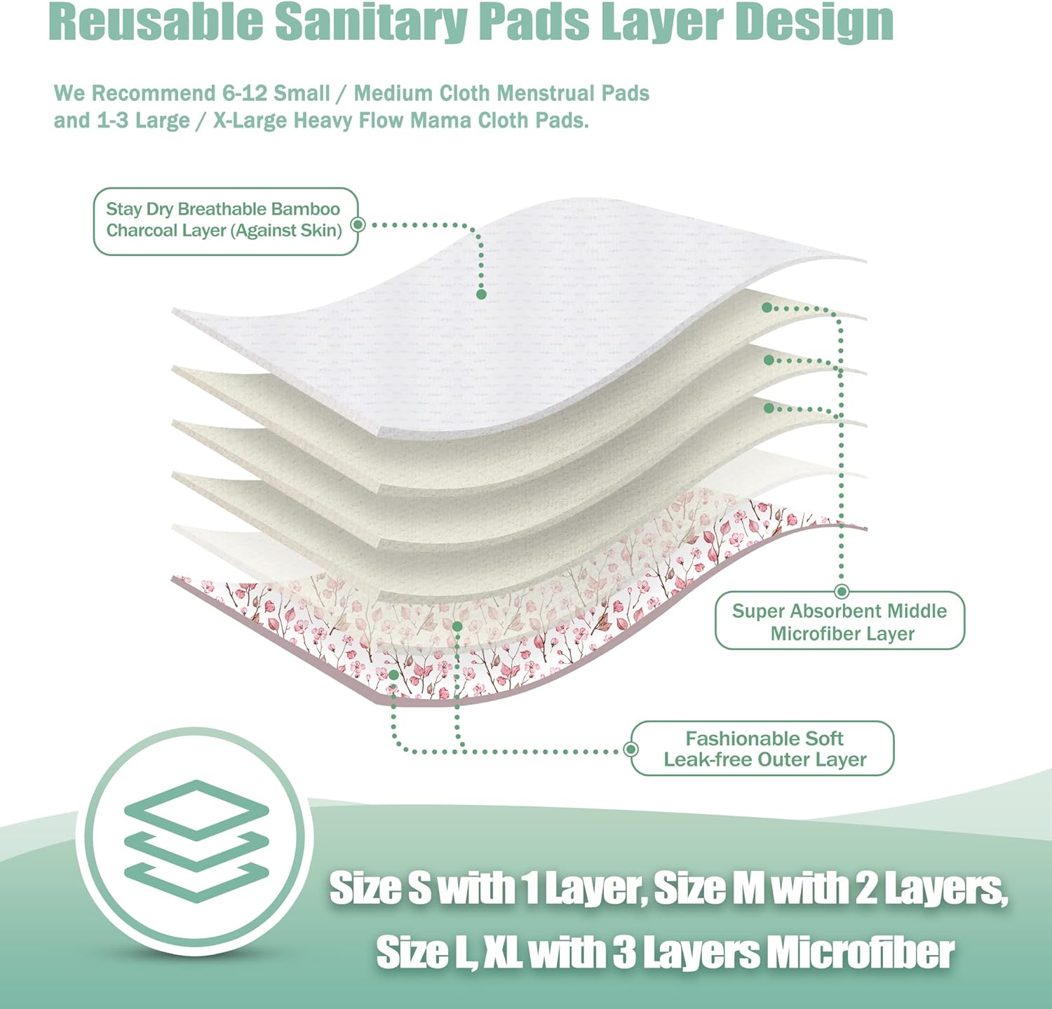 - Lovely Print Leak-free Outer of Cloth Sanitary Napkin and comfort of the softer, charcoal layer against your skin. Great as period panties too. Fold over and snap into place. Never feel embarrassing