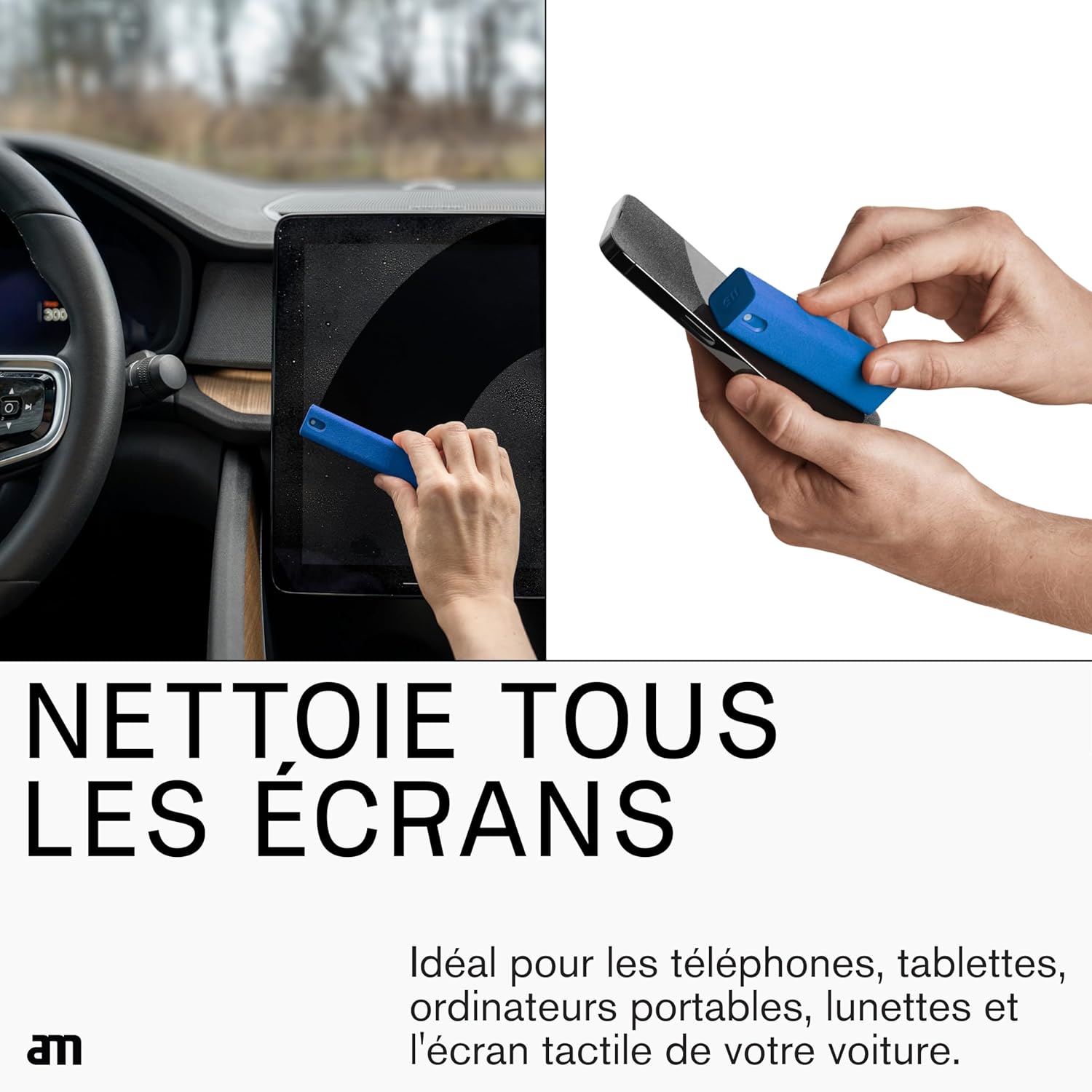 am Screen Cleaner with 7 oz Refill β Alcohol-Free Spray & Microfiber Cloth for iPhone 15 & 14, iPads, Tablets, Laptops, Phones, Smart TVs, Car Displays β Streak-Free, Non-Toxic, Eco-Friendly, Blue