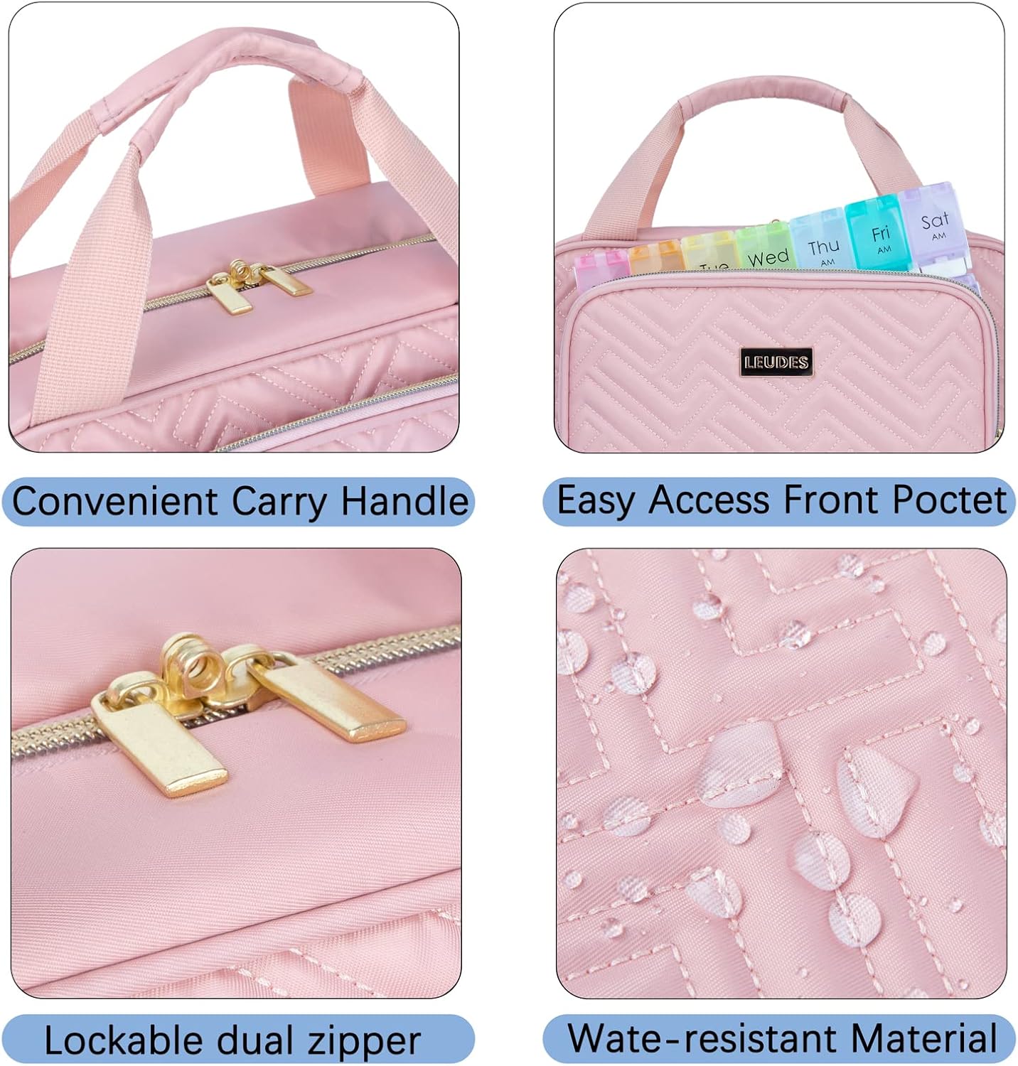 Leudes Travel Pill Bottle Organizer,Medicine Organizer and Storage,Home Medication Bag, Cases,Carrier for Pills,Vitamin,Fish Oil,Supplements for Women and Men (Large, Pink)