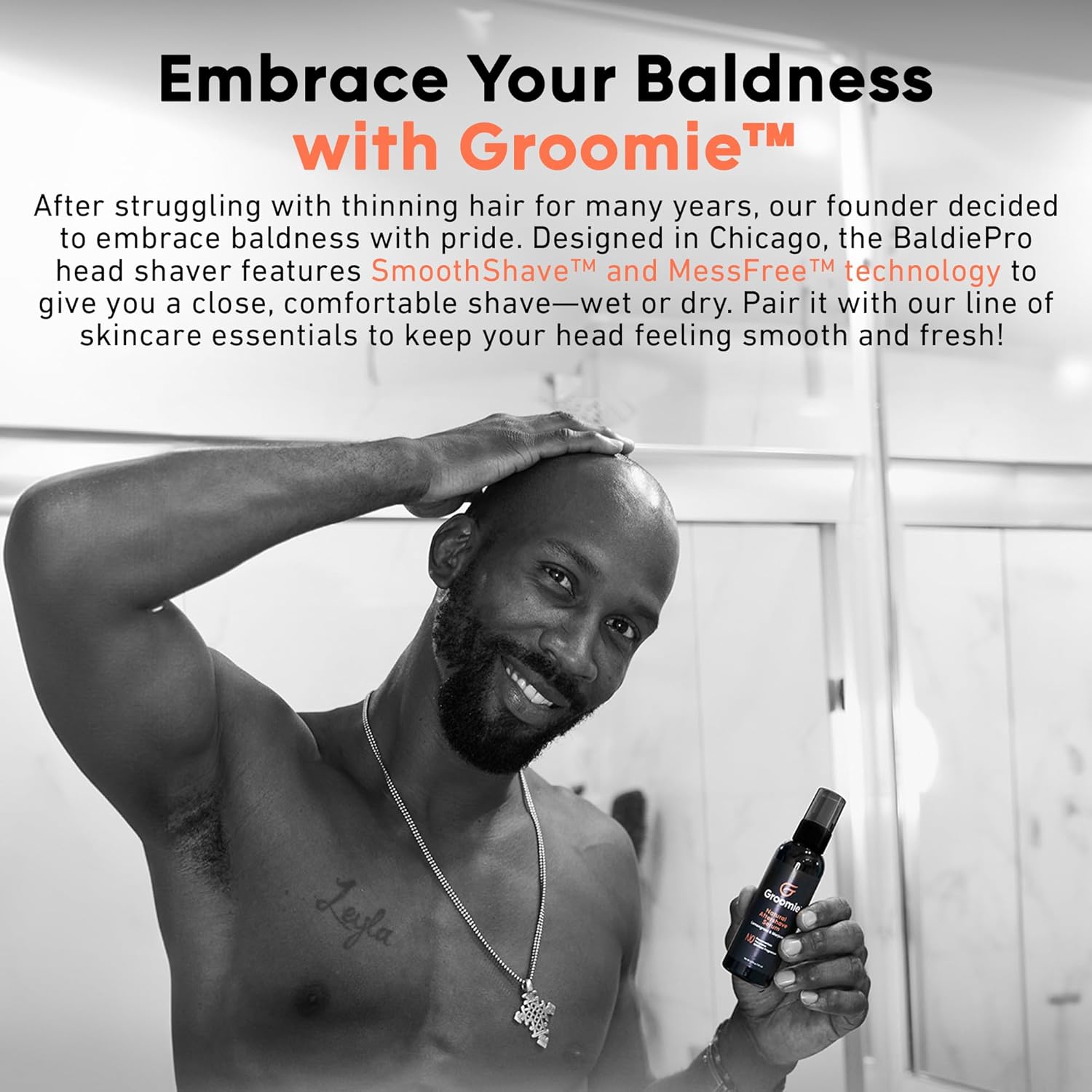 GROOMIE Natural Aftershave Serum for Bald Men - Mens Skin Care and After Shave for Head, Neck, Face & Chin - Soothing Balm to Tend Skin and Prevent Bumps and Razor Burn After Hair Removal - 1 OZ