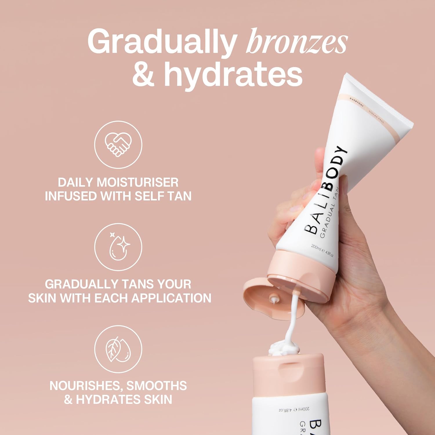 - Product Benefits : Itโs our bestselling self tan formula in an everyday body lotion. This game changing product combines a deeply hydrating moisturiser with fake tan. Leaves you with that Insta famous Bali Body tan, no sun required. Itโs our bestselling self tan formula in an everyday body lotion. This game changing product combines a deeply hydrating moisturiser with fake tan. Leaves you with that Insta famous Bali Body tan, no sun required.
