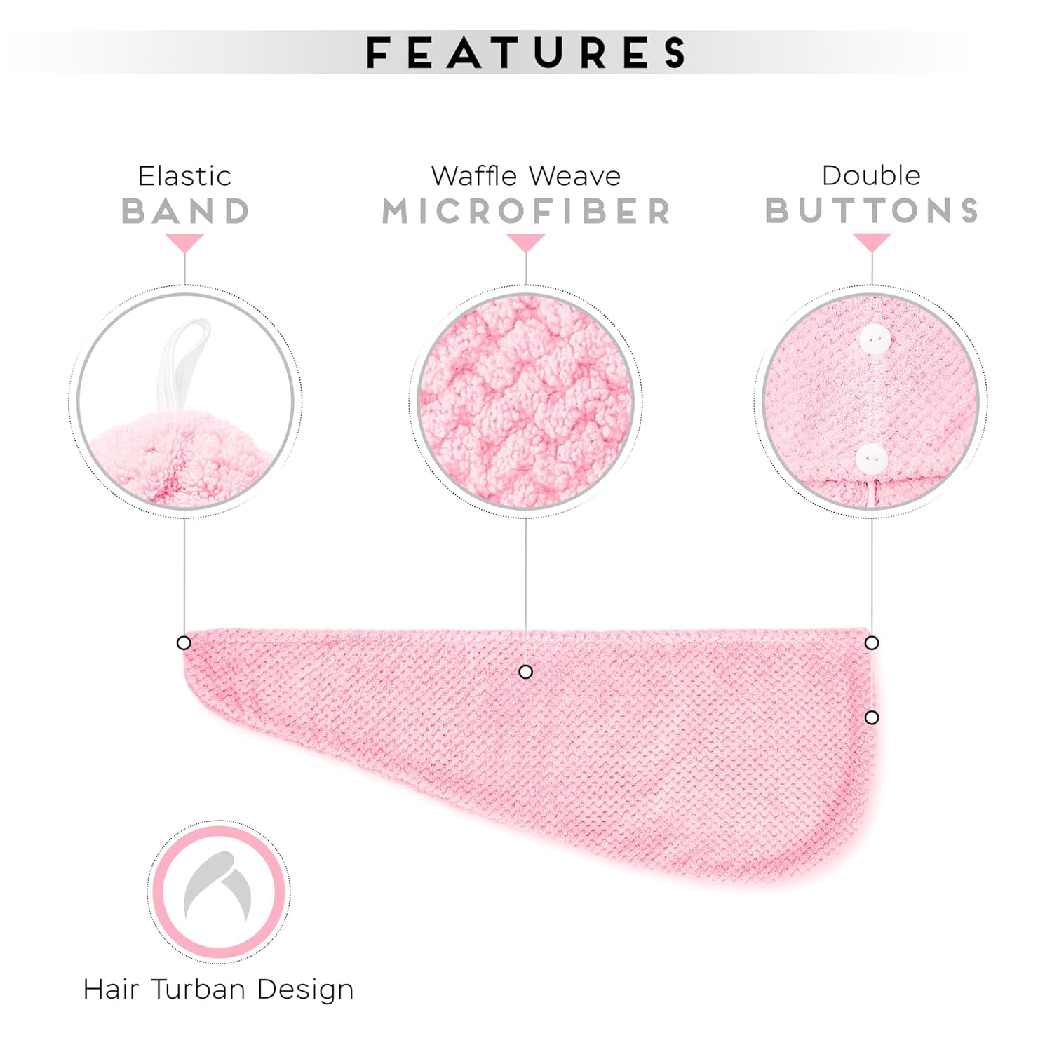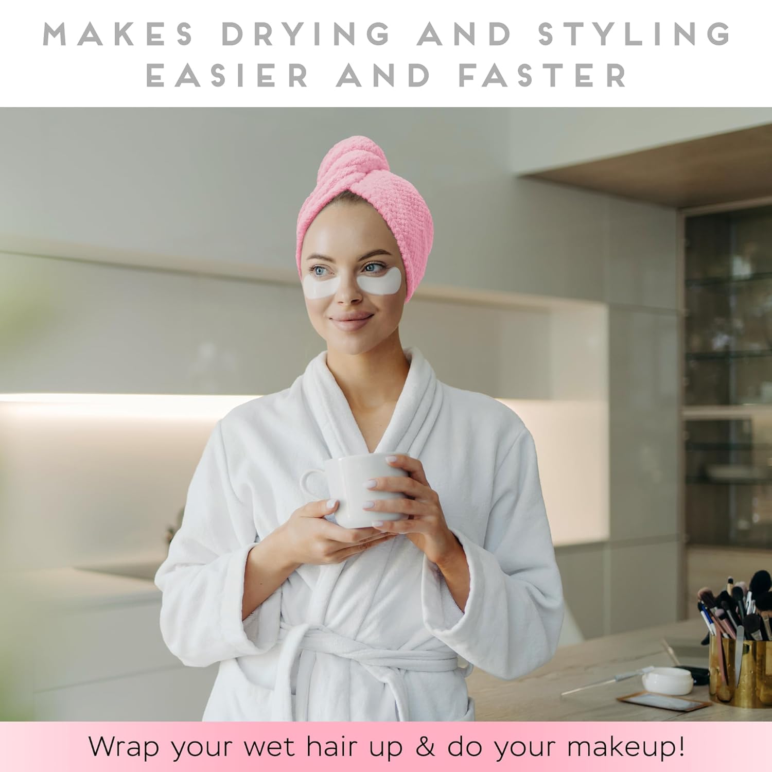 2 Pack Microfiber Hair Towel Wrap for Women, Anti Frizz Quick Drying Hair Turban for All Hair Style, Absorbent and Lightweight (Pink)