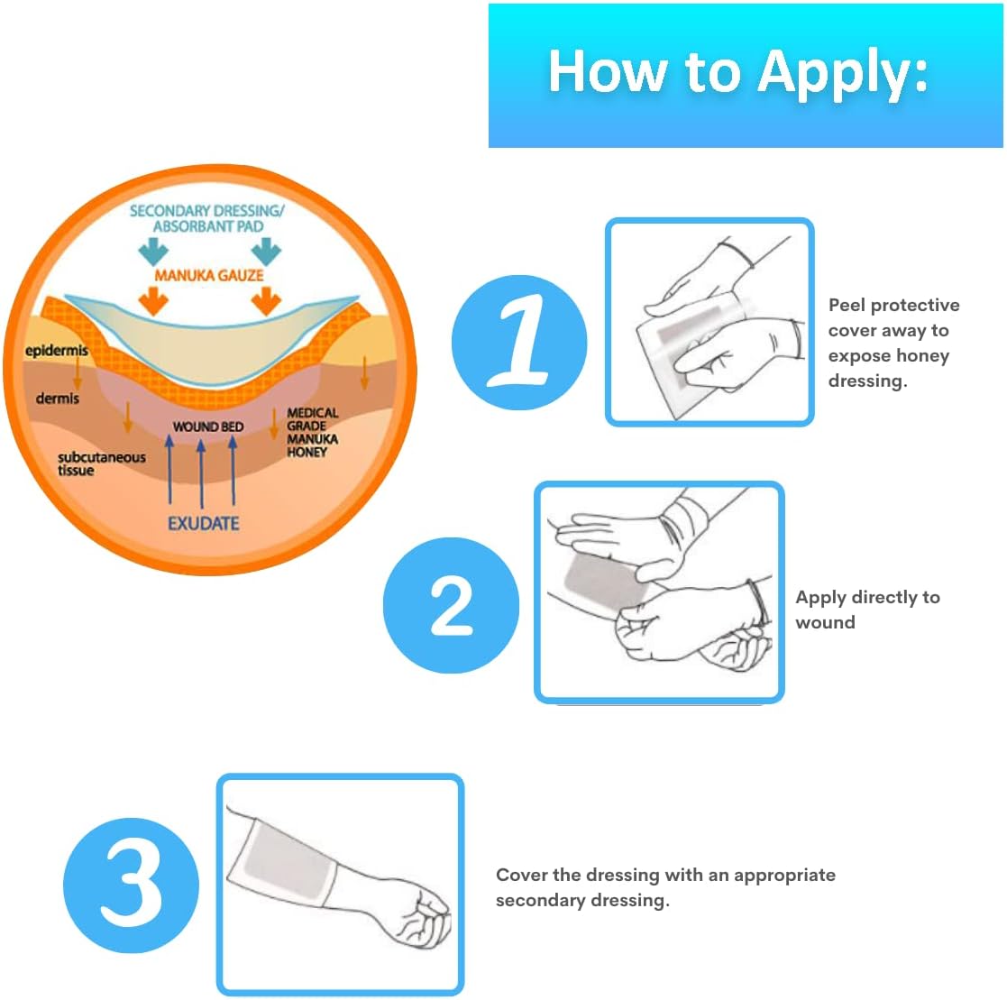 - EASY-TO-USE: Individually wrapped and sterile gauze pads help maintain cleanliness and guard against infection. Gauze-impregnated dressings provide the most comfort when changing or removing them. Our Manuka honey wound care products make it easier for you to take bandages on and off.