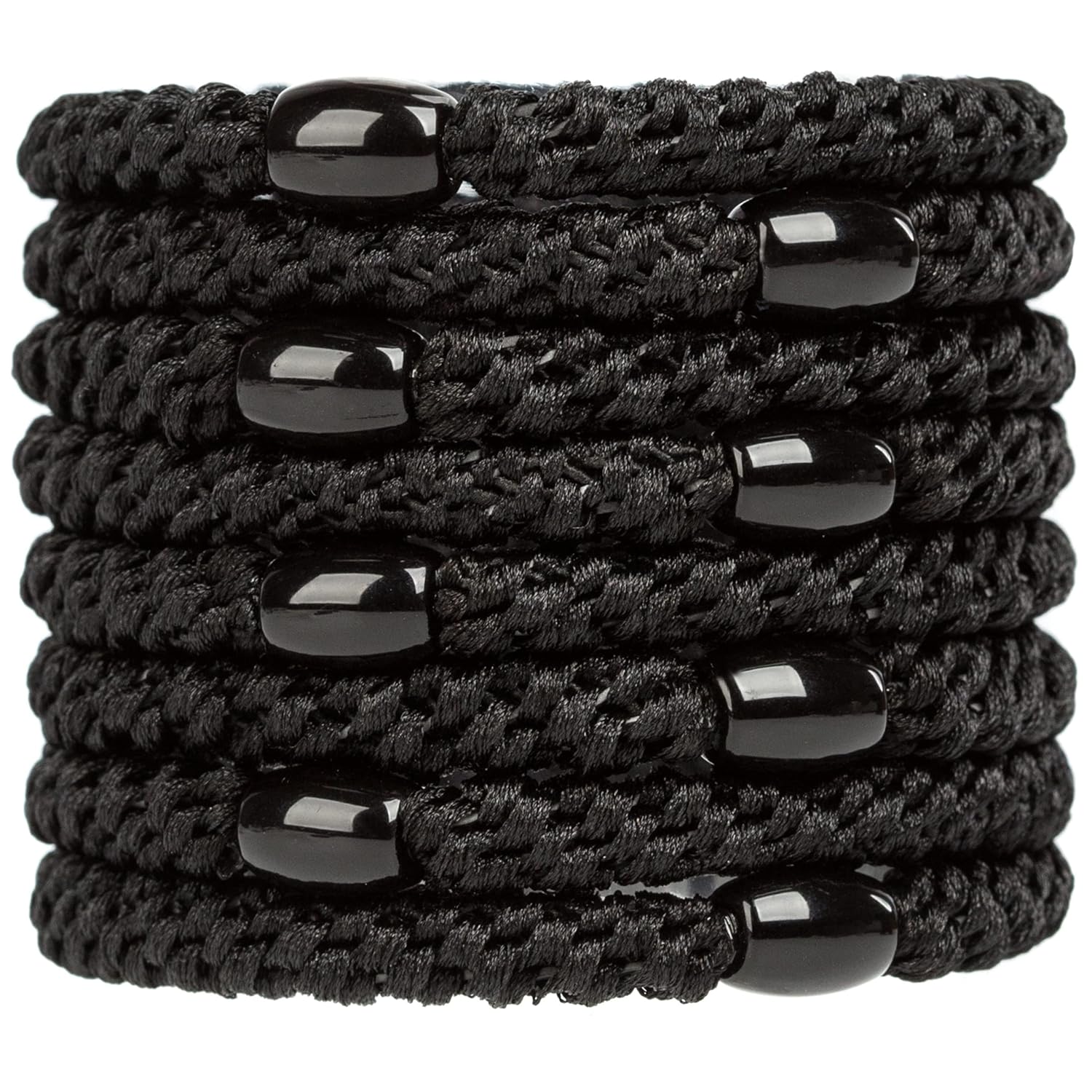 AXEN 8PCS Elastic Hair Tie for Women Girls, Cotton Bands Soft Woven Ponytail Holders for Thick Hair and Curly Hair, Black