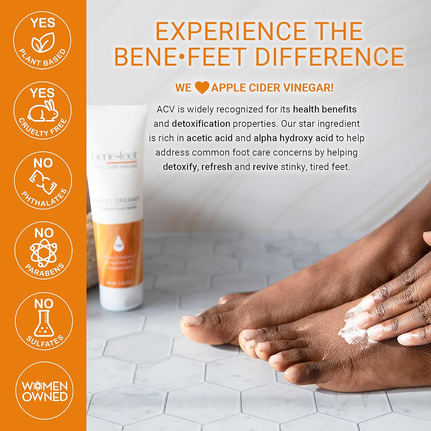 Benefeet Sweet Dreams Overnight Foot Repair - Night Cream for Detox, Moisturize & Soften Dry Cracked Skin, With Apple Cider Vinegar, Turmeric & Borage Oil, 4oz