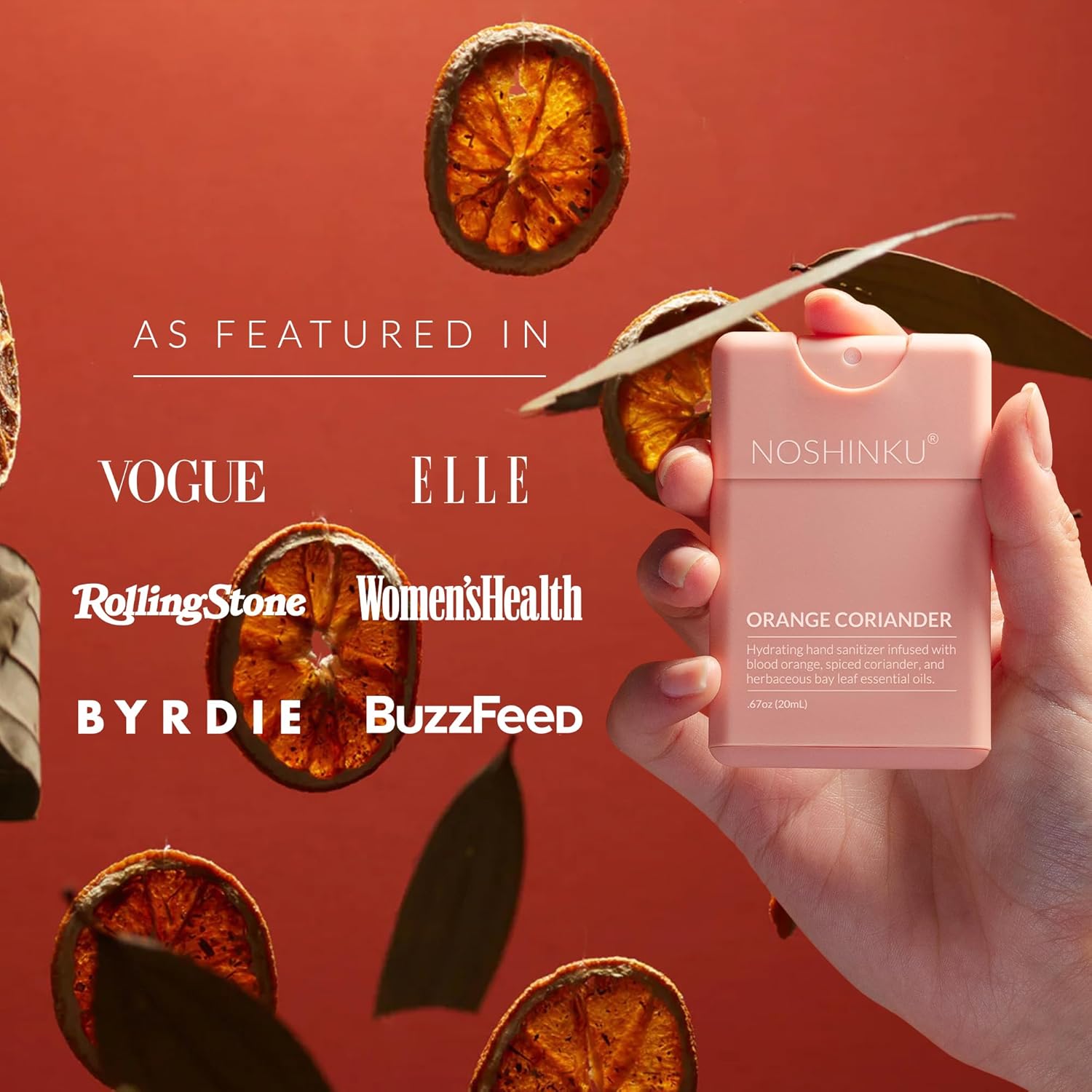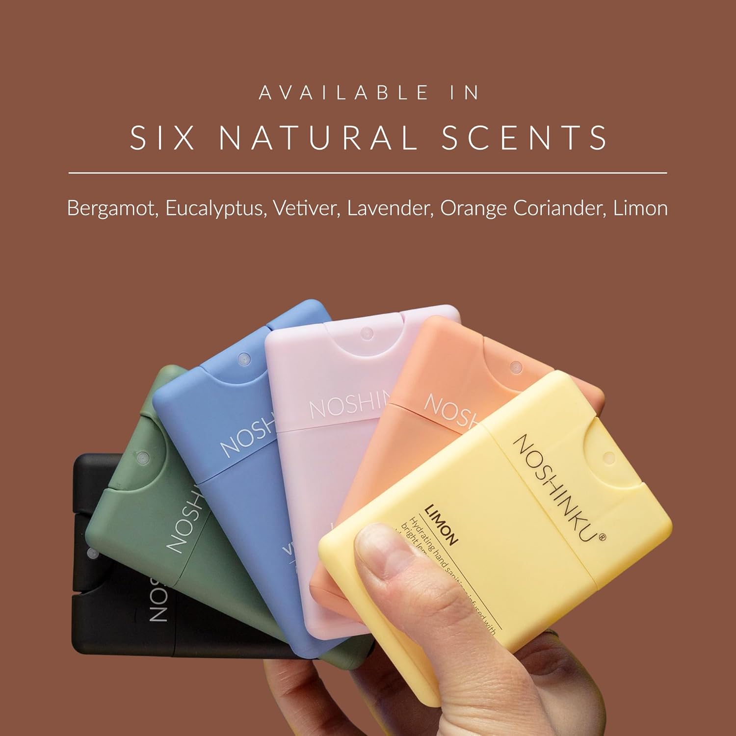Noshinku - Refillable Hand Sanitizer Orange Coriander 3-Pack, Travel Size Spray, Hydrating Botanical Oils, Natural Ingredients, All Natural Fragrances, Sugarcane Derived Alcohol, No Parabens, No Dyes