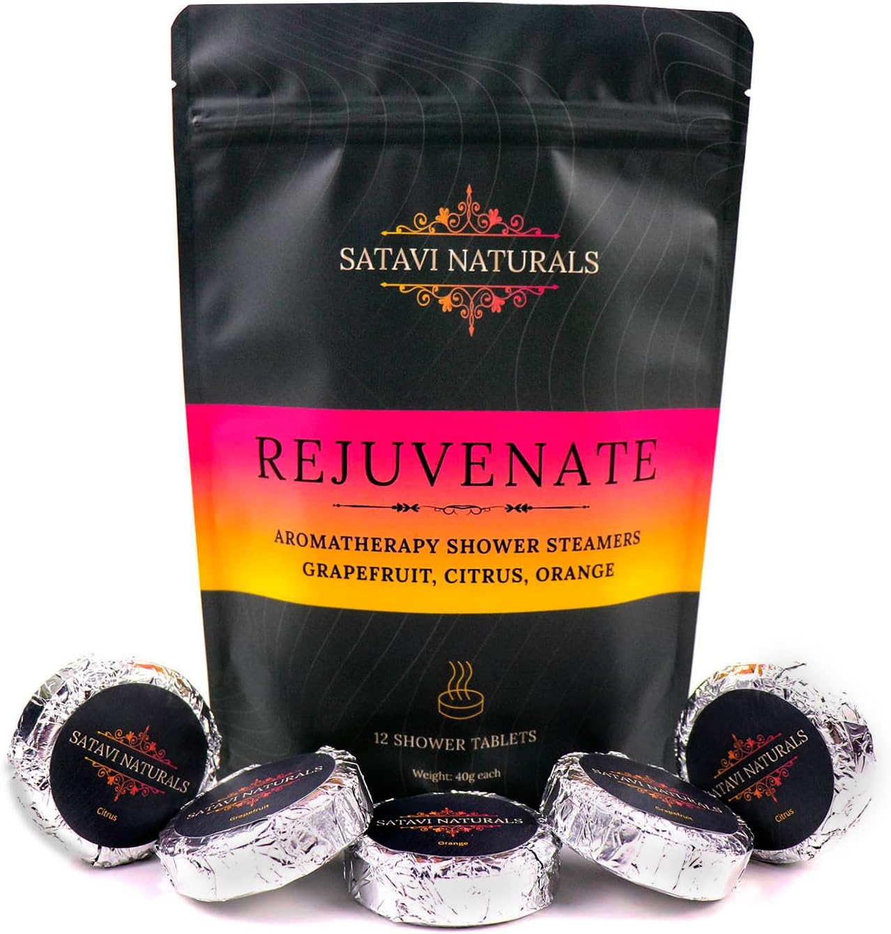 Aromatherapy Shower Steamers (12-Pack) Rejuvenate - Grapefruit, Citrus, Orange Scented Vapor Tabs for Self-Care, Aromatic Shower Bath Bombs, Natural Essential Oils for Women & Men