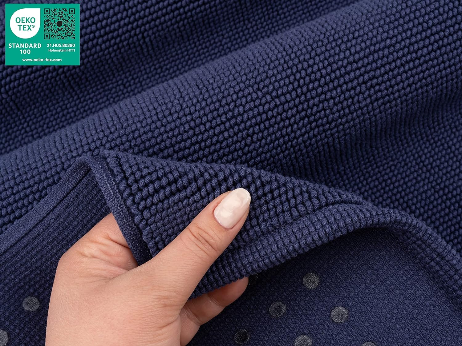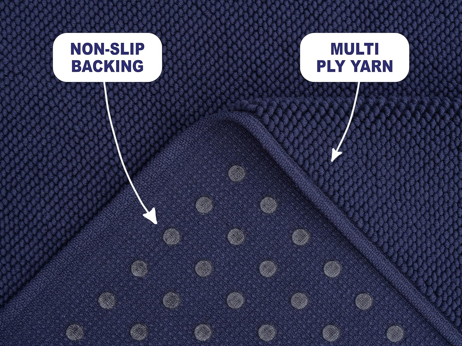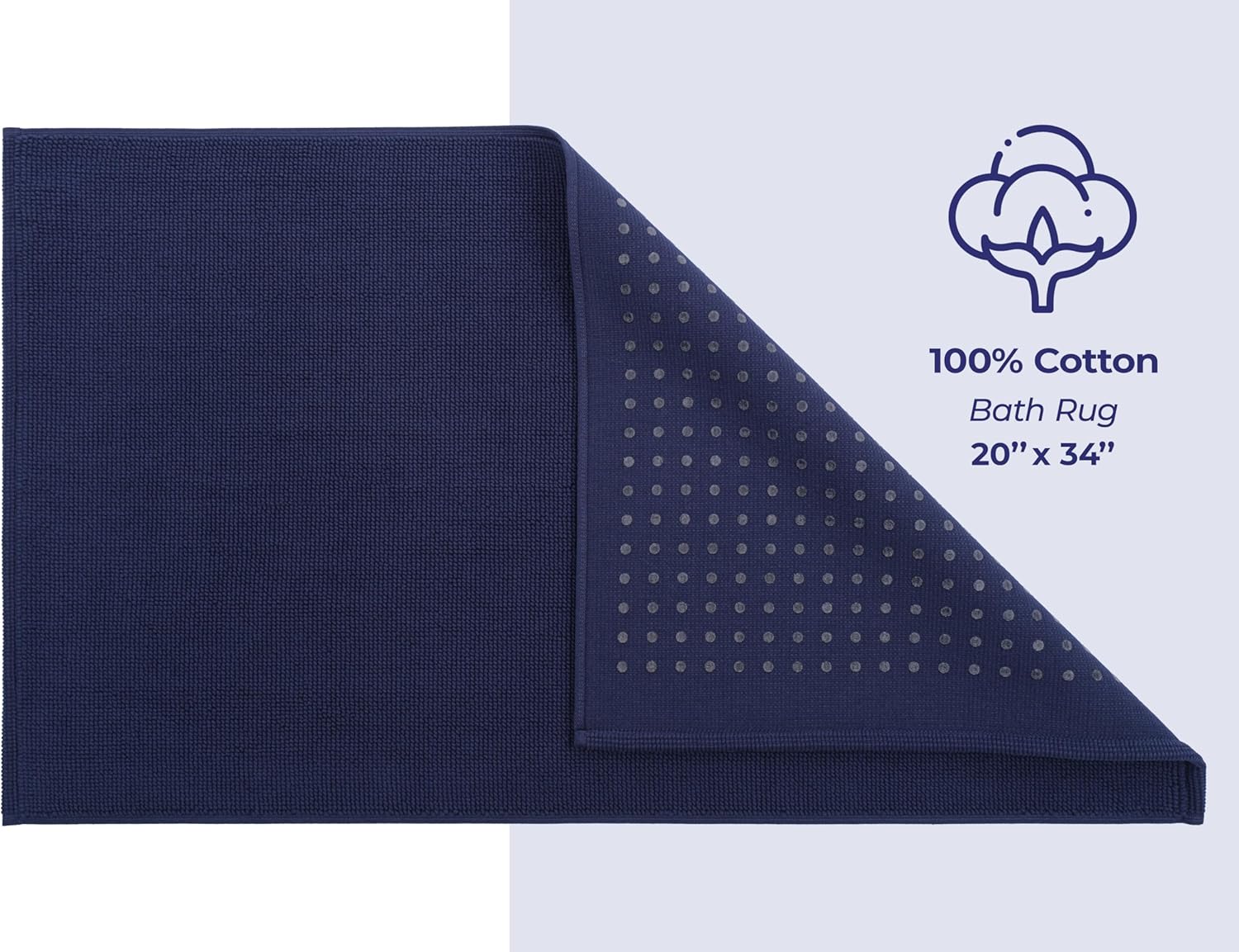 American Soft Linen Bath Rug, 20 in 34 in 100% Cotton Bath Mats Rugs for Bathroom, Slip Reducer Washable Shaggy Form Area Rugs, Navy Blue Bath Rug
