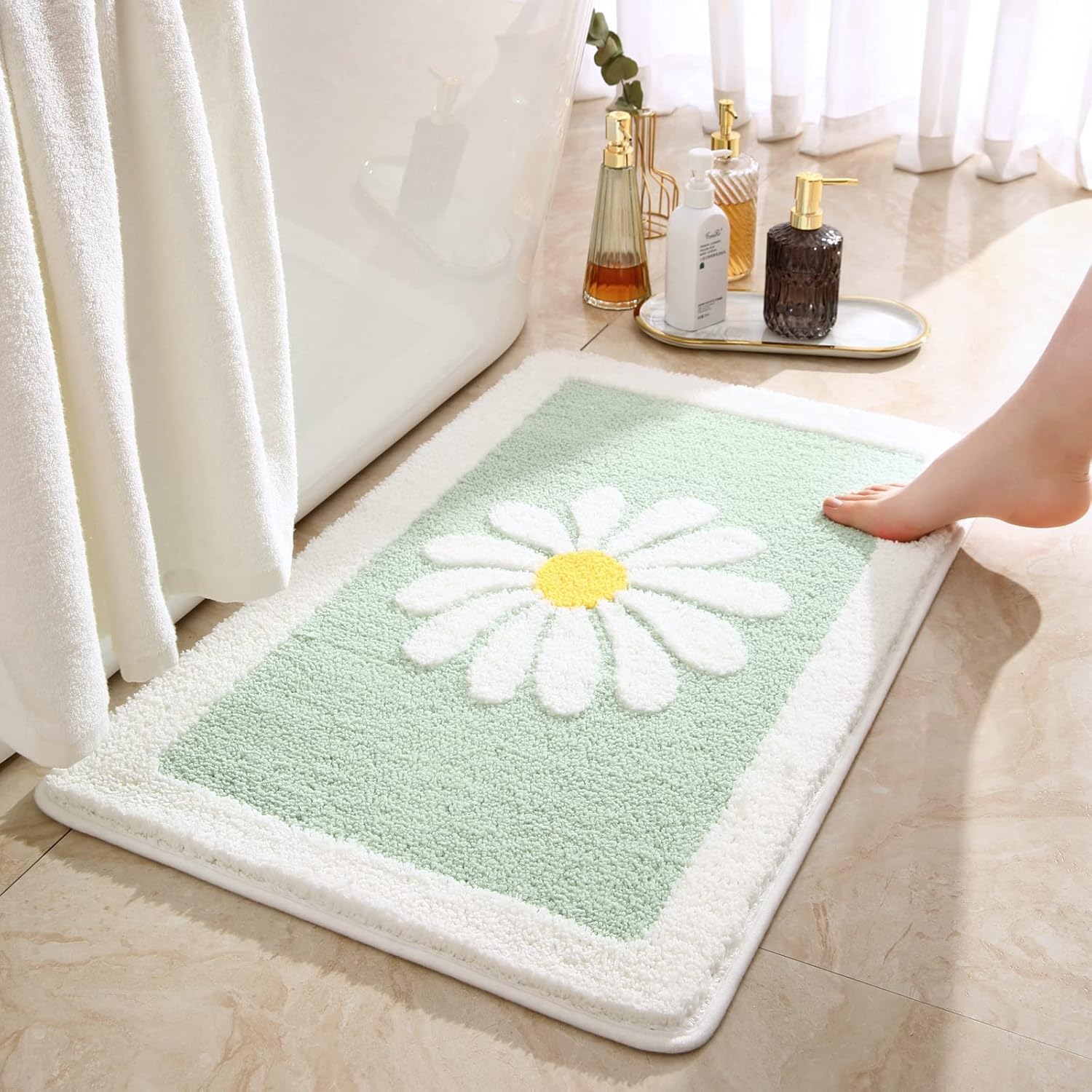 - BATHROOM RUGS GREAT ABSORPTION: These comfortable Bathroom rug mats are made with special technology for quick absorption and quick drying. Bathroom Rugs Arrange your powder room to keep quiet and warm as much as possible.Bathroom Rugs The soft superfine fiber can absorb as much water as possible from wet feet. And the water will not stay on the surface of the bathroom mat