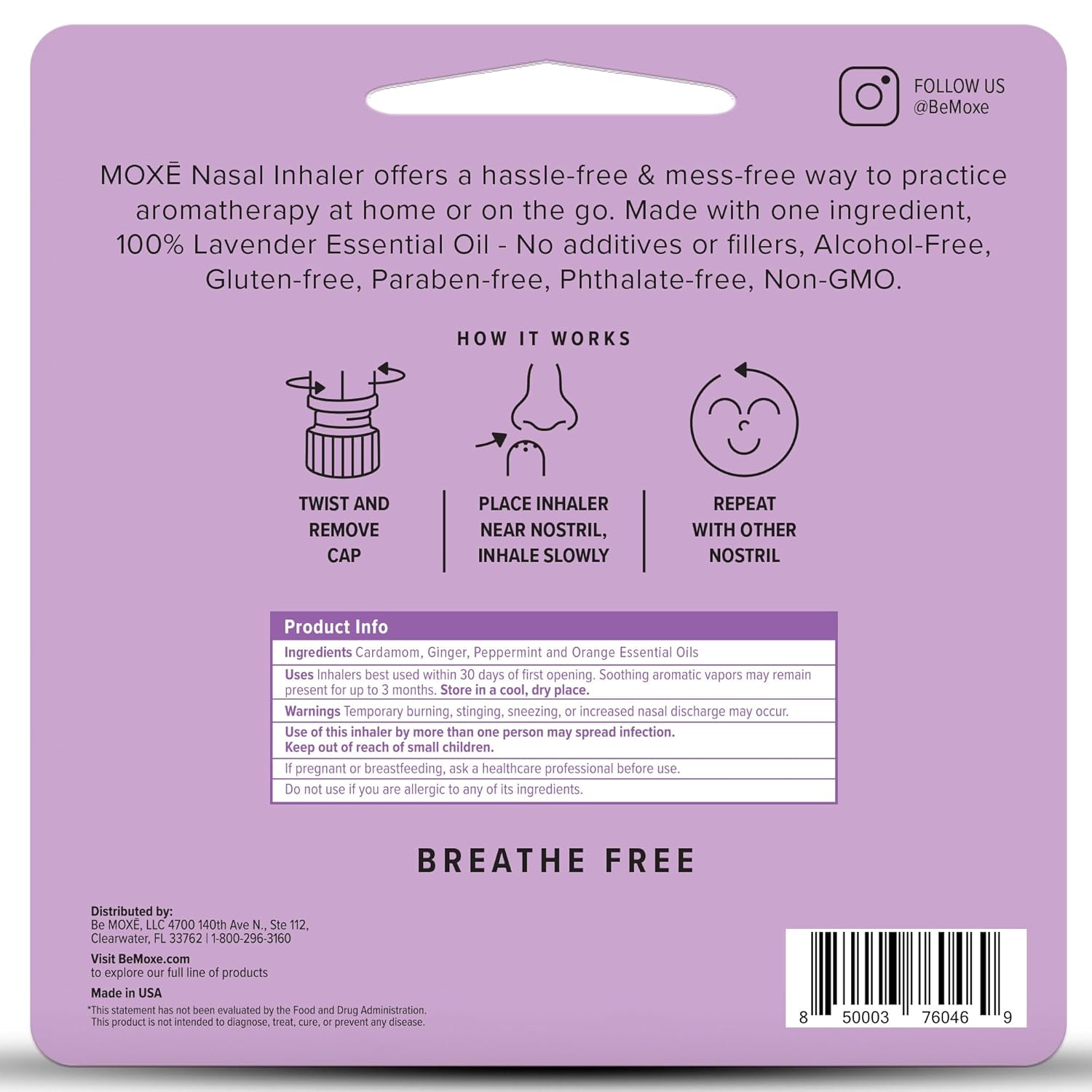 - Take it on-the-go - MOXĒ inhalers make it easy to practice aromatherapy wherever you go. They’re easy to use and fit right in your pocket. Lavender inhalers give you a convenient sense of relaxation anywhere and everywhere.