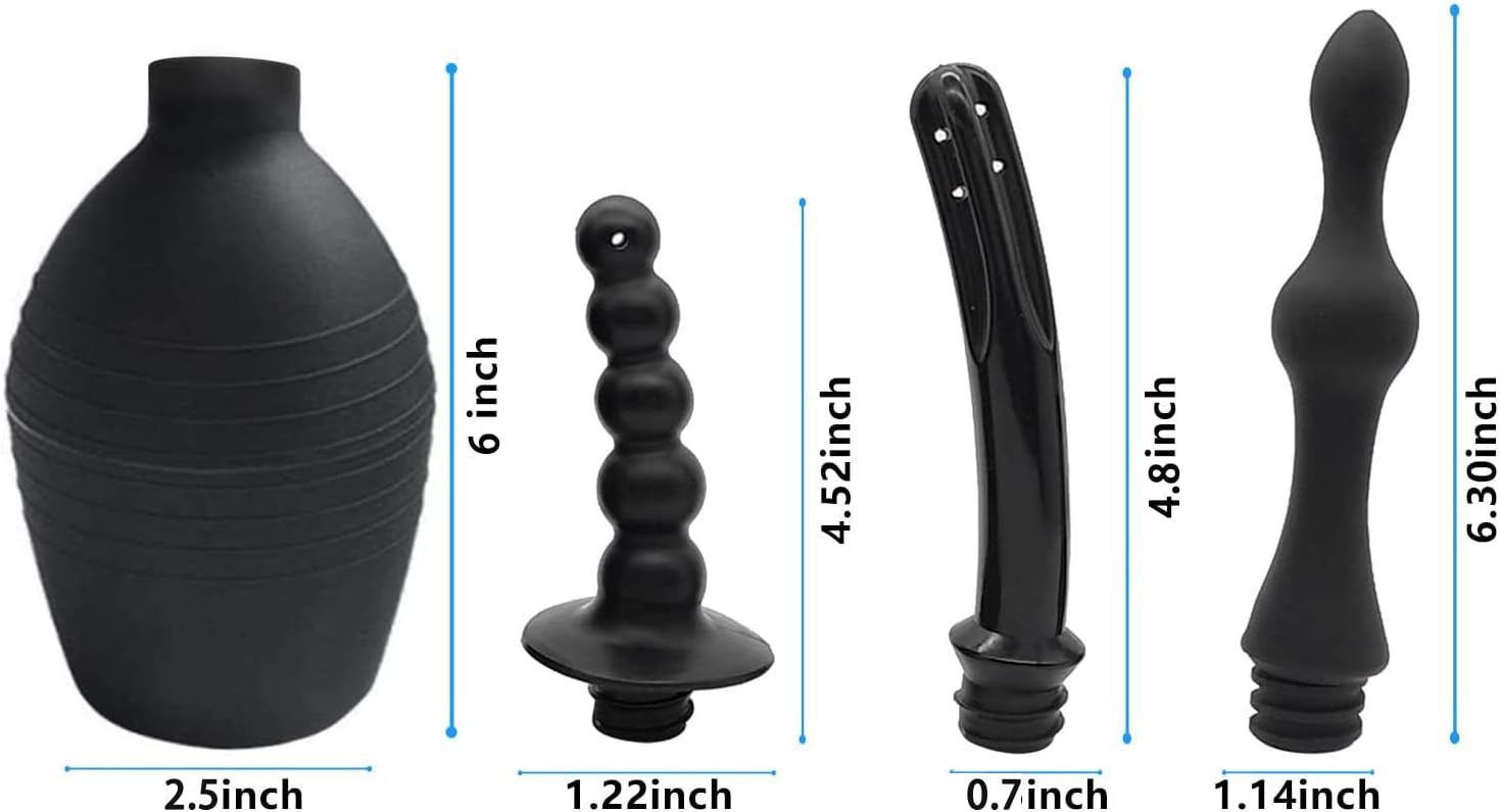 - 500ML capacity black silicone enema bulb with 3 nozzle is made of premium medical PVC, BPA FREE and used for anal.