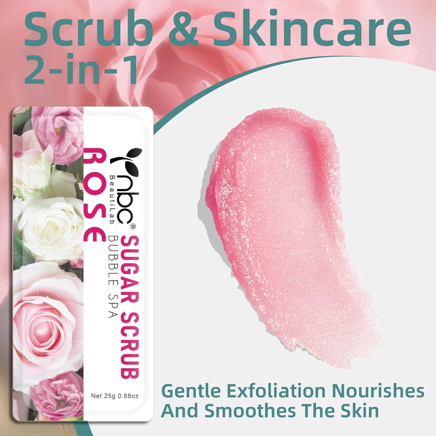 Foot Exfoliating Scrub, Sugar Scrub, Dead Skin Remover for Feet, Individually Packaged Foot Scrub Smooths, Hydrates, Detoxifies Tired and Dry Cracked Feet 16 Packs per Box, Rose