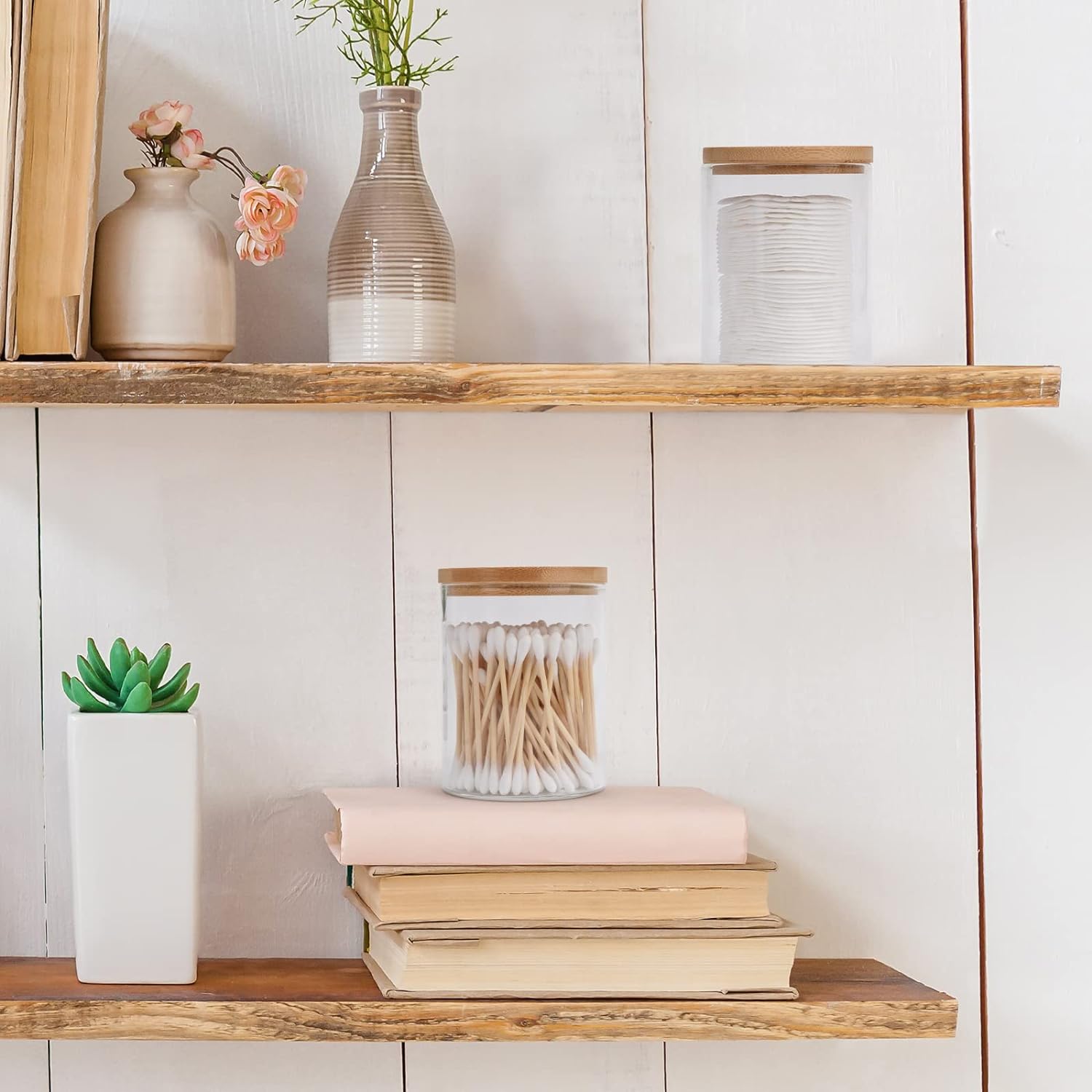 - Versatile Bathroom Accessories: Each jar in this bathroom accessory set is ideal for organizing cotton balls, cotton swabs, and other bathroom essentials. Their practical design ensures easy access and promotes neat organization, making them perfect for your bathroom decor and storage needs.
