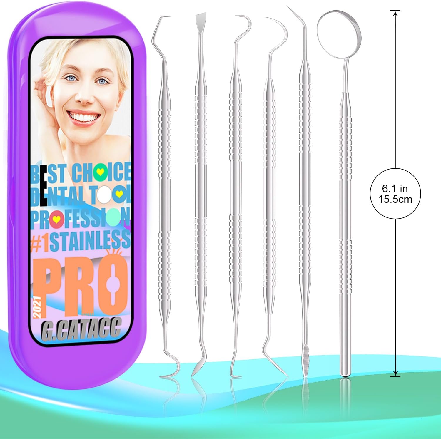 G.CATACC Dental Tools, Metal Dental Pick Teeth Cleaning Tools for Home Use, Stainless Steel Oral Care Hygiene Kit with Tooth Scraper Plaque Tartar Remover - with Case