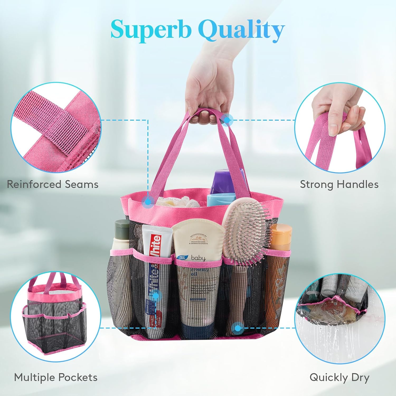 - Superb Quality: The shower tote bag is breathable and lightweight. The wide reinforced handles are strong and won't pinch your hands. This shower bag can be hung from doors, shower heads and hooks of all kinds with ease.