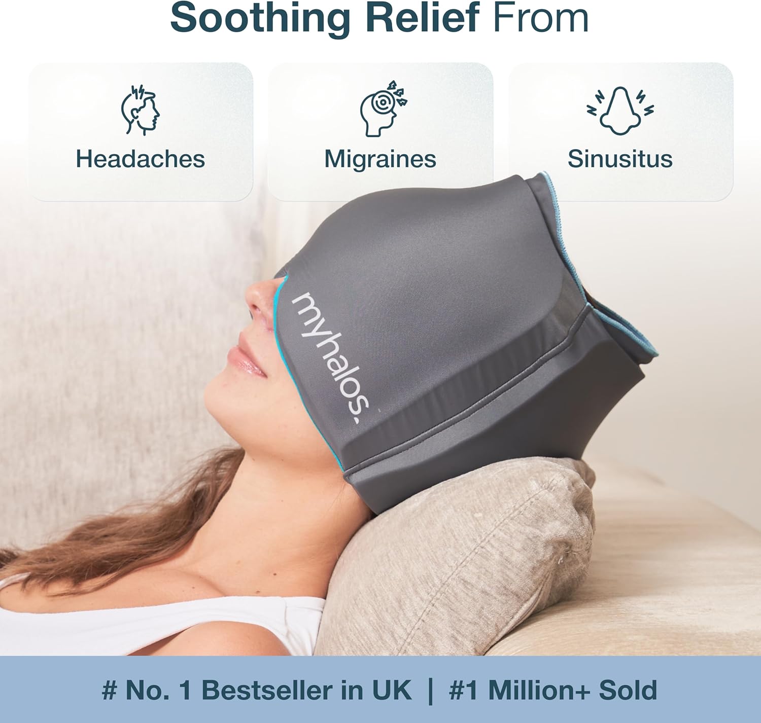- { The Power of Cold Therapy } When your head is pounding, you need a cooling ice hat that lasts longer than regular liquid ice packs and doesn't leave your head wet! The MyHalos sinus pressure relief mask can be worn as a migraine ice head wrap or ice pack head wrap.