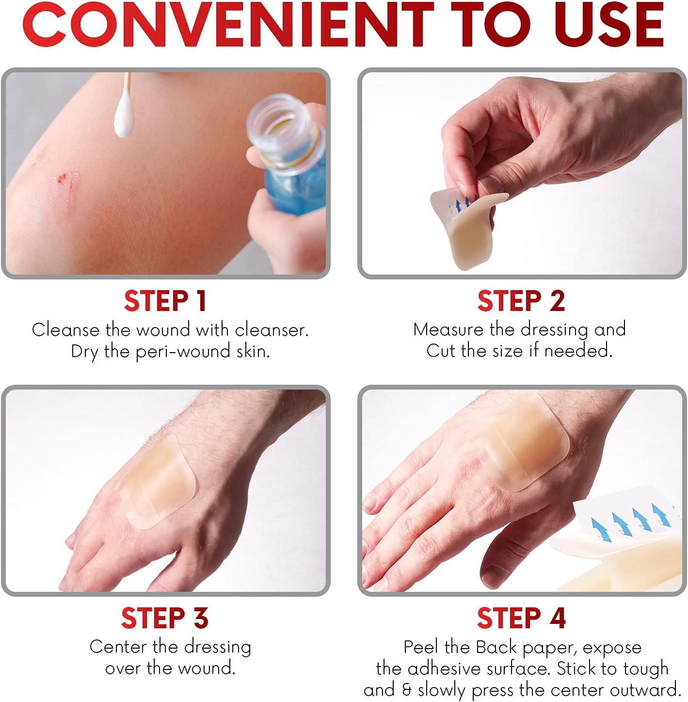 - EASY TO APPLY, CONFORMS TO SKIN - Since these Bed Sore Bandages have Control Gel Formula, they are more flexible and conform easily even in hard-to-dress areas such as elbows, shoulders, knees, and heels. To use, gently heat the dressing between palms, cut to size if needed, then peel and stick.
