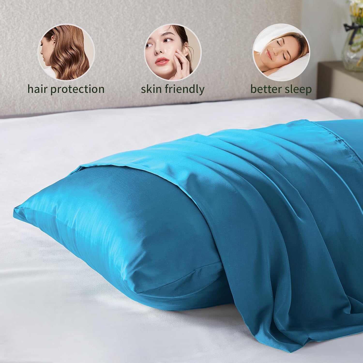 - 【HIGH-QUALITY SILK FABRIC】Our pacific blue silk pillowcases are mainly made of mulberry silk as the main fabric, which is rich in 18 kinds of amino acids and natural water content, keeping the skin hydrated and not dry. The fabric is soft and silky, shiny like pearls; porous and breathable, it can better help dehumidification and ventilation, and sleep close to the body, and there is no burden on skin contact