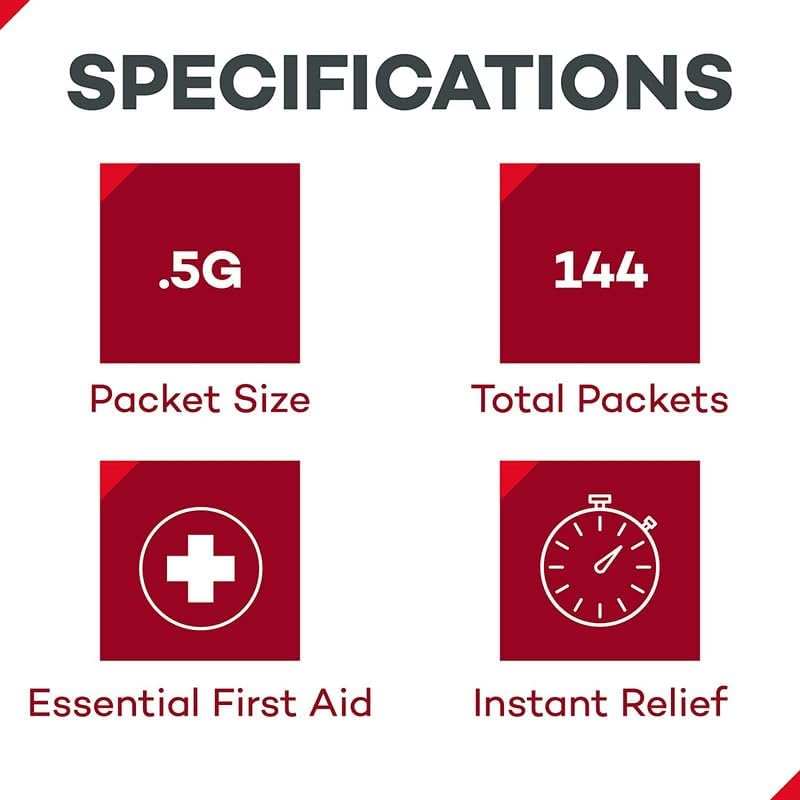 - Easy-to-Use: The single-use packets come in convenient and easy-to-use dispenser boxes containing 144 individually wrapped packets per box. Simply clean the wound and surrounding area and apply a small amount of product.