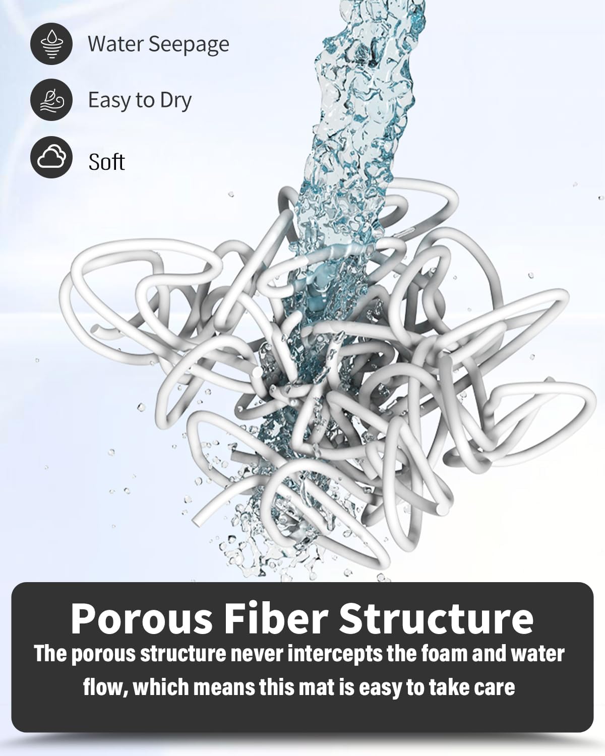 - Easy Cleaning: The foam on top can be easily rinsed off. You can simply use a showerhead and just leave the mat with lattice bottom up on your bathroom floor, or hang over your bathtub, your bath safety bar. The mat can dry fast, which creates no smell or marks on your floor.