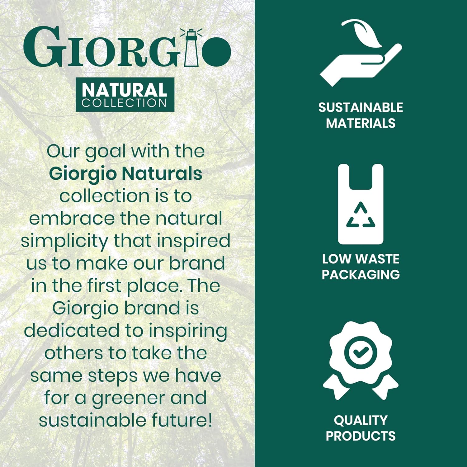 - GIORGIO NATURALS - The GIONAT collection is specially designed with natural materials to ensure that you are doing your part in reducing plastic waste and saving our planet. GIONAT products come in a convenient cotton canvas travel bag for storage