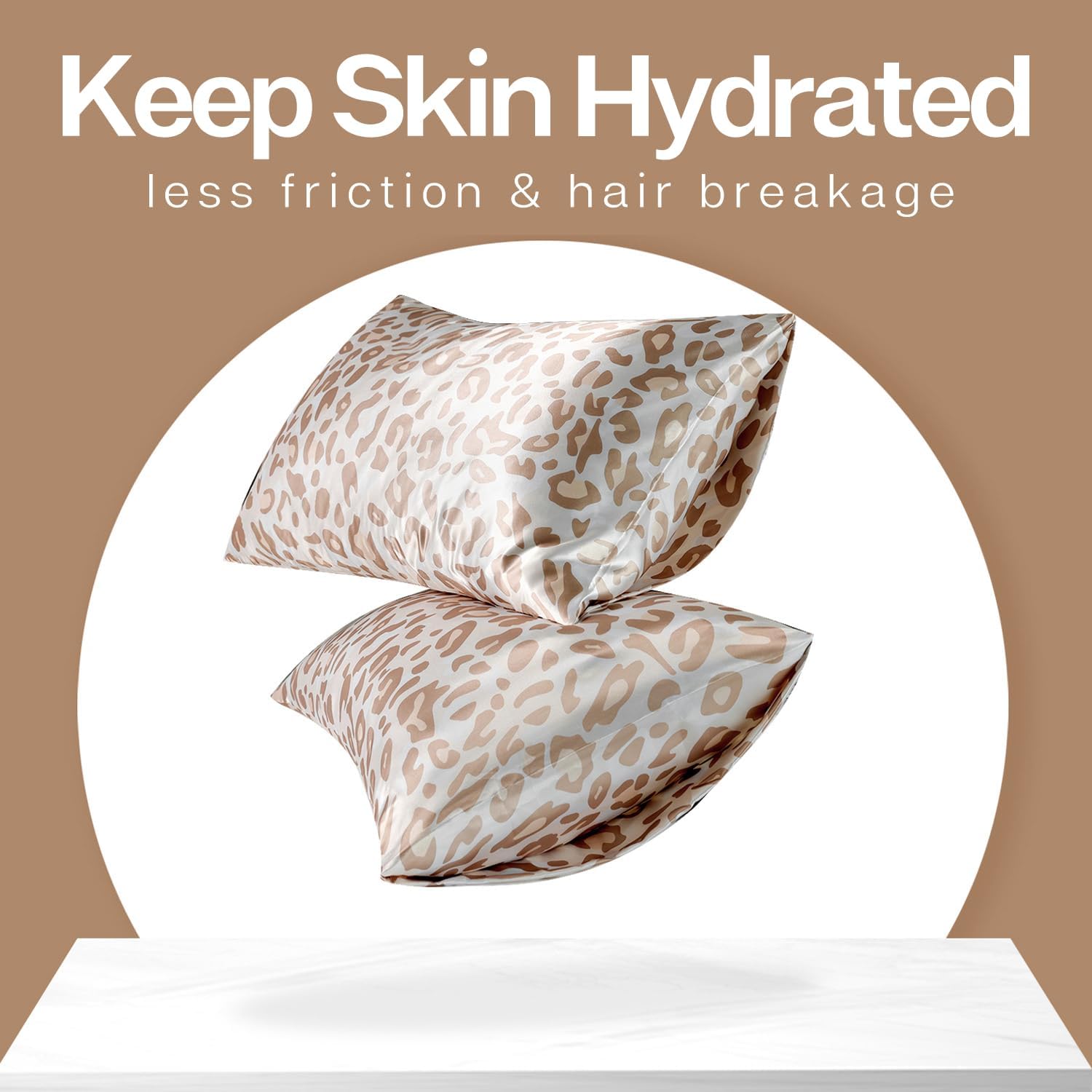 MR&HM Satin Pillowcase for Hair and Skin, Silk Satin Pillowcase 2 Pack, Queen Size Pillow Cases Set of 2, Silky Pillow Cover with Envelope Closure (20x30, Champagne Leopard)