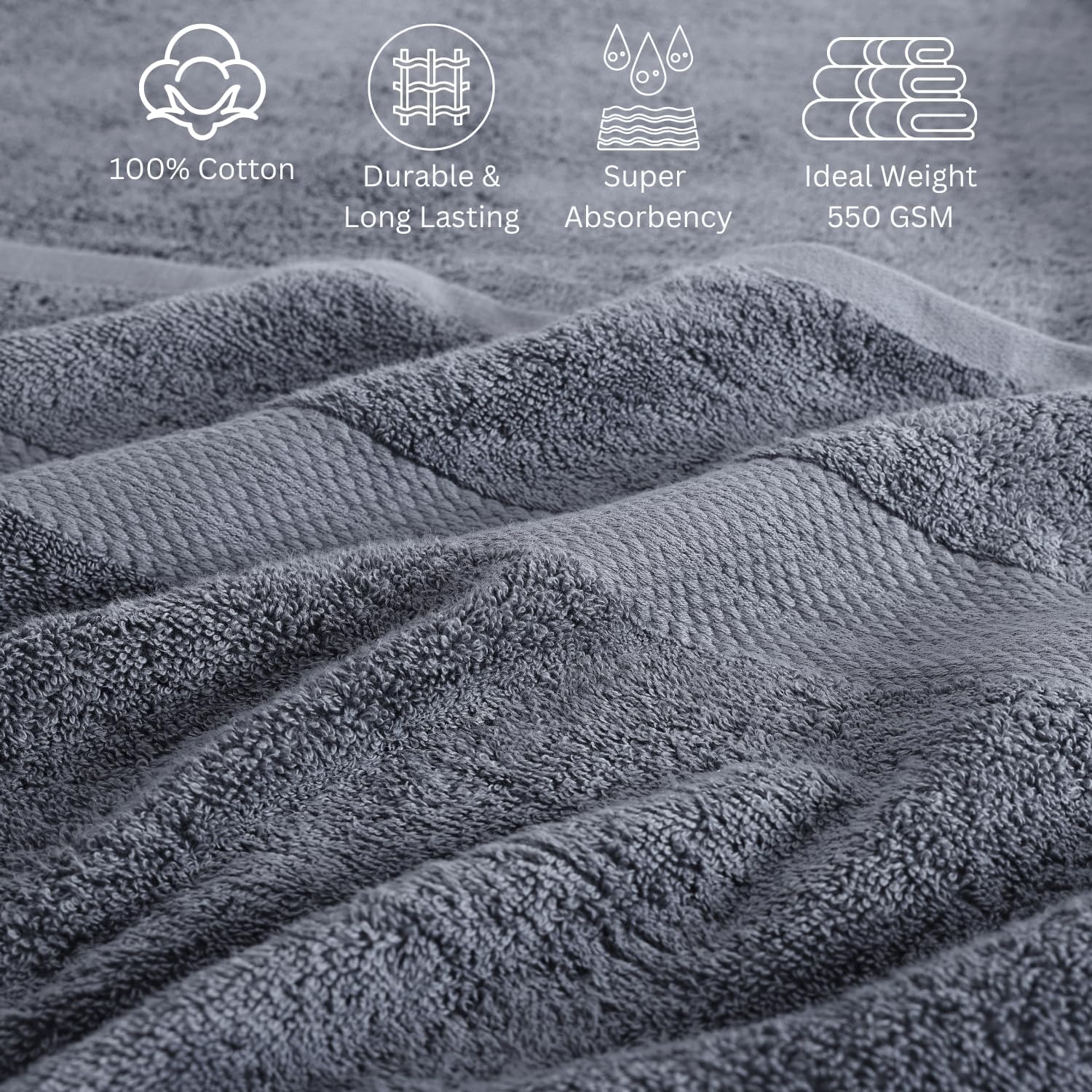 24 Pc 100% Cotton Bath Towels For Bathroom Set, Quick Dry, Machine Wash Soft & Absorbent, Oeko Tex Cert, Daily Use, Guest or Spa-2 Bath Sheets 4 Bath Towels 6 Hand, 4 Fingertip 8 Washcloths–Cool Grey