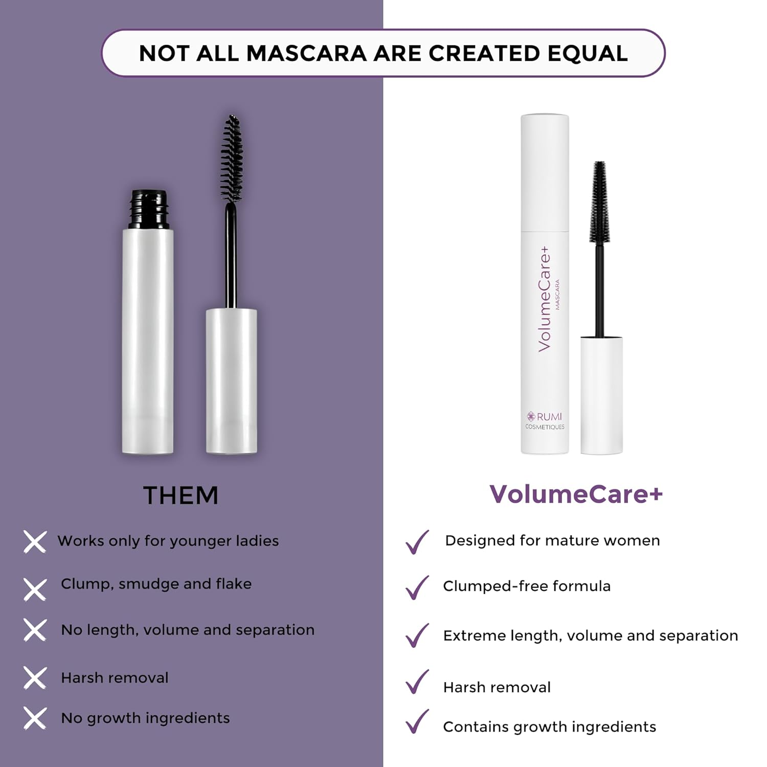 - DESIGNED FOR MATURE LASHES: VolumeCare+ Mascara is made to address common concerns for older women, like thinning or sparse lashes. Finally, enjoy a mascara that’s made exactly for you.