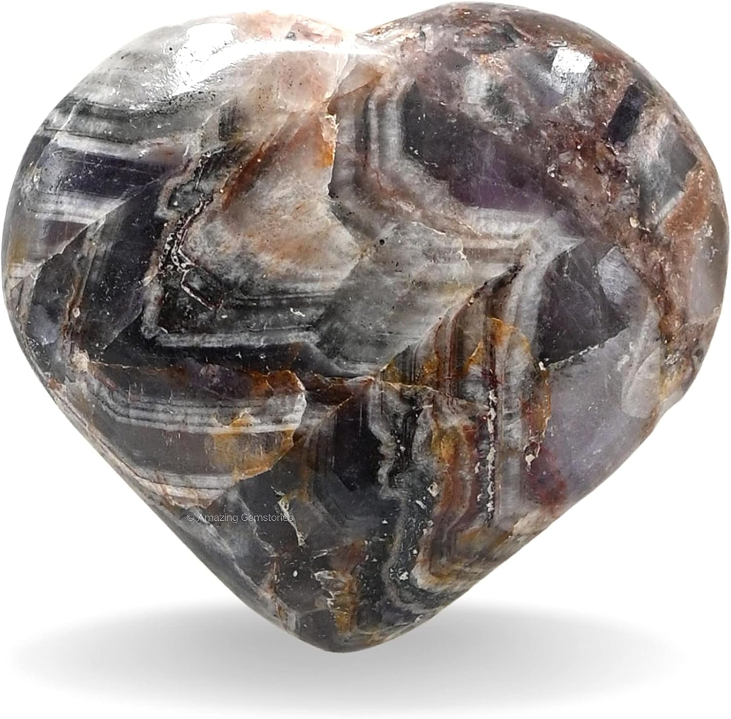 Amazing Gemstone Amethyst Chevron Crystal Heart Palm Stone - Pocket Massage Worry Stone for Natural Body Chakra Balancing, Reiki Healing and Crystal Grid