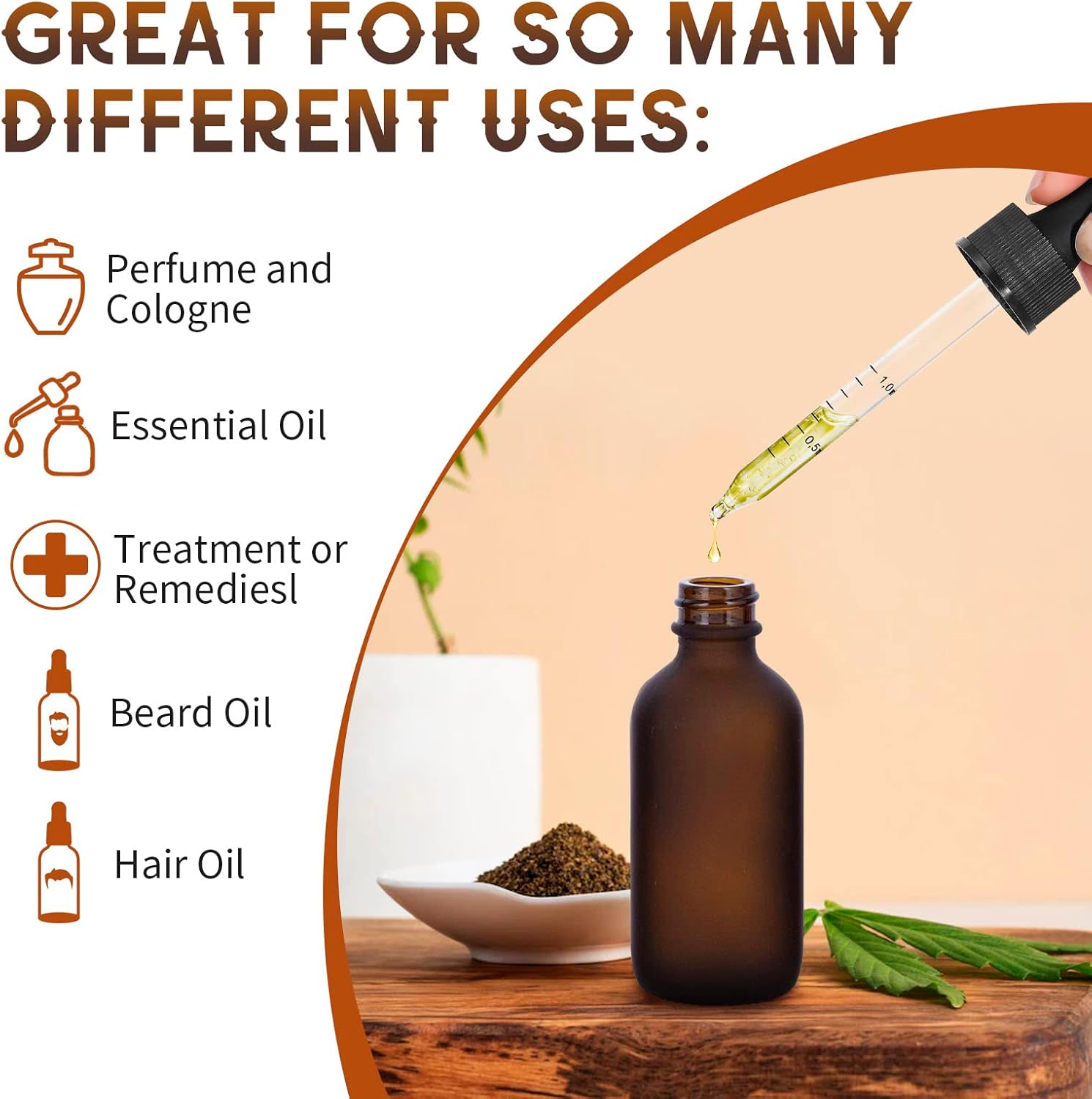 - 【UV RESISTANT】The frosted amber dropper bottle is made of UV resistant amber glass, BPA and lead free, blocks light and prevents the oxidation of essential oils, ensuring your essential oils and perfumes are safe and perfectly protected from harmful UV rays and the risk of rapid evaporation.