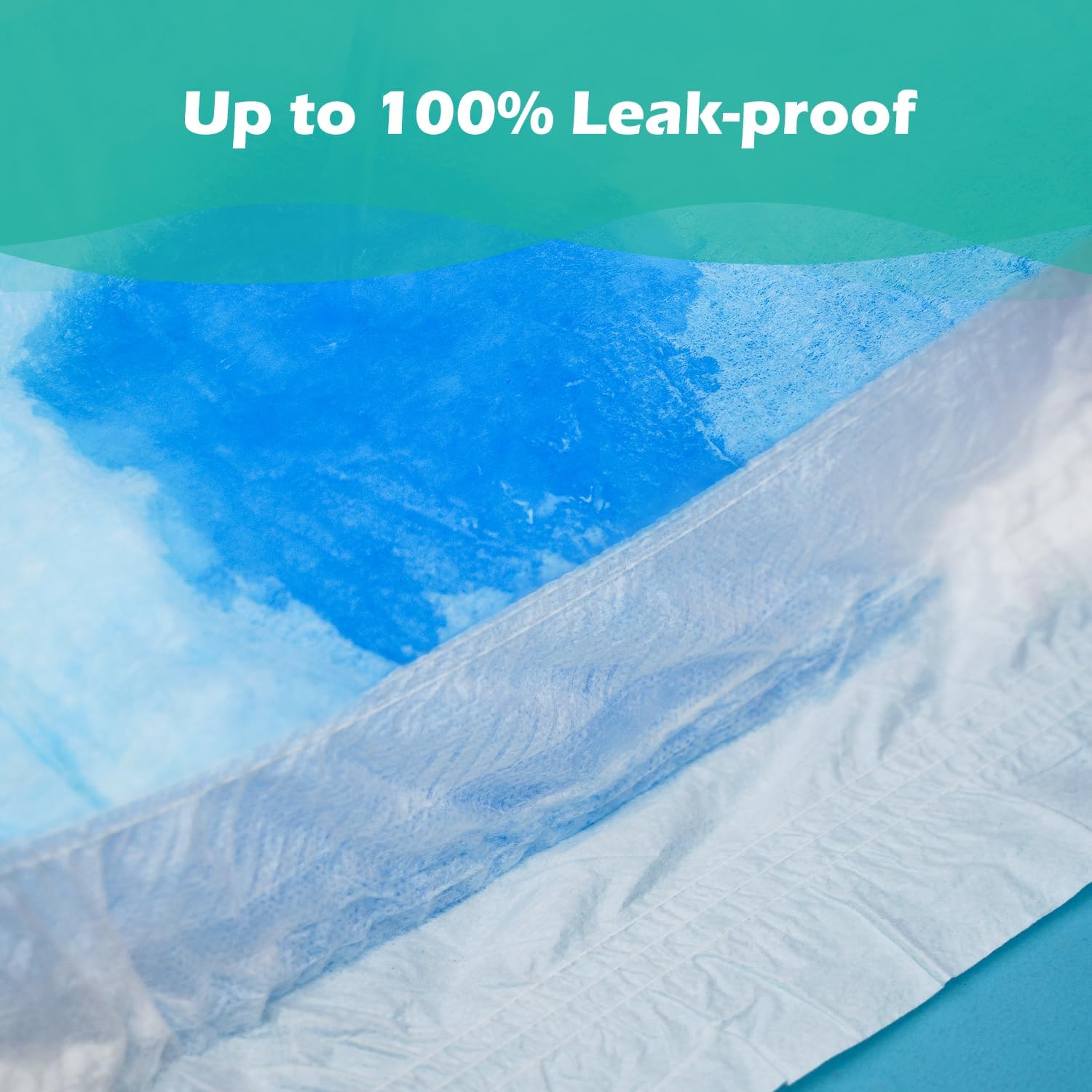 - ANTI-LEAK GUARDS: Leakage protection and acquisition layer quickly pulls and directs fluid away from the skin. Adult incontinence diapers with anti-leak barrier provide discreet, garment-like, and natural feel.