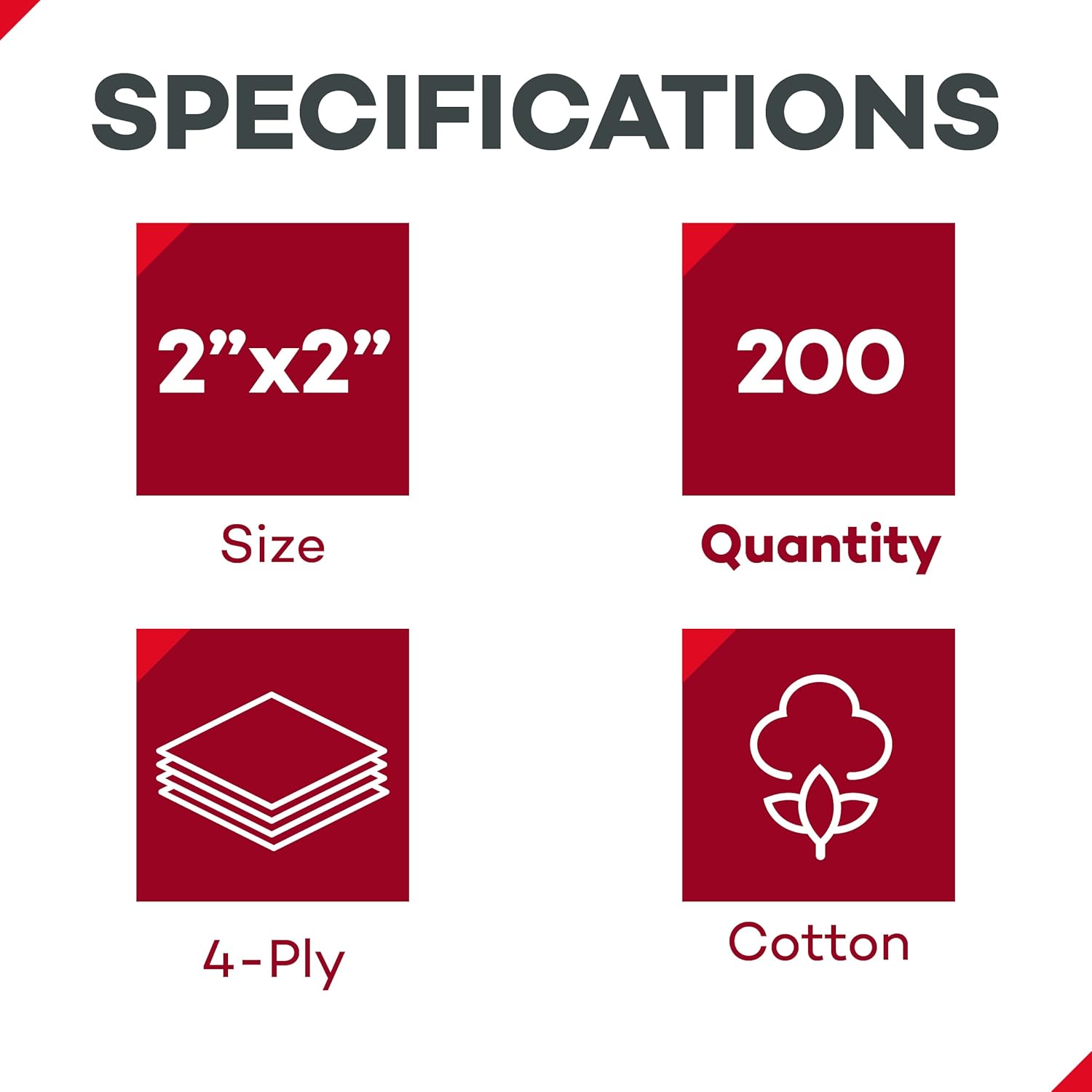 - Dealmed Premium Non-Woven Sponges – 2" x 2" 4-Ply Non-Woven Gauze Pads, 25 Pouches, 2 Per Pouch (Pack of 4), Absorbent Gauze Sponges, Wound Care Product for First Aid Kits and Medical Facilities