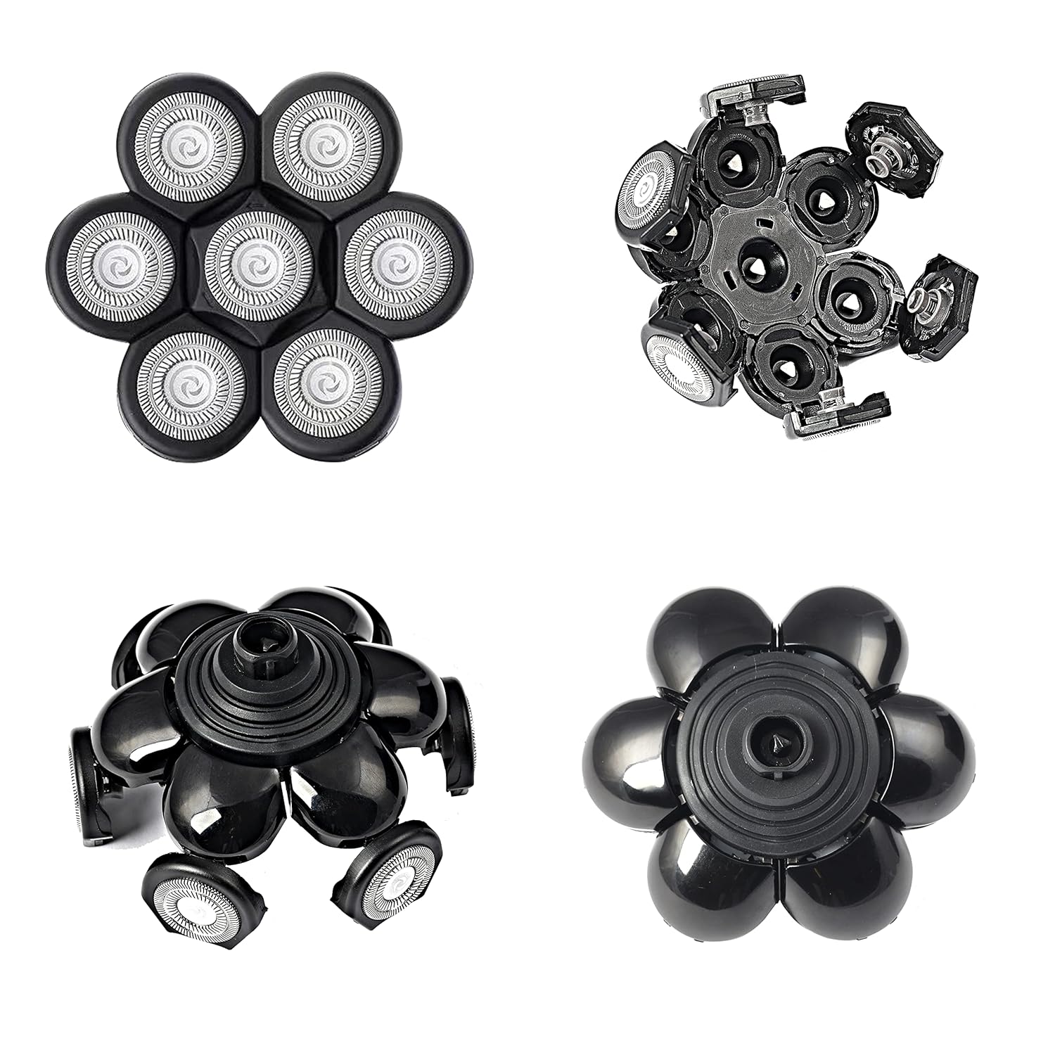 7 Blades Head Men's Electric Shaver Replacement Heads Floating Washable Shaver Replacement Blades for Bald Men (Black)
