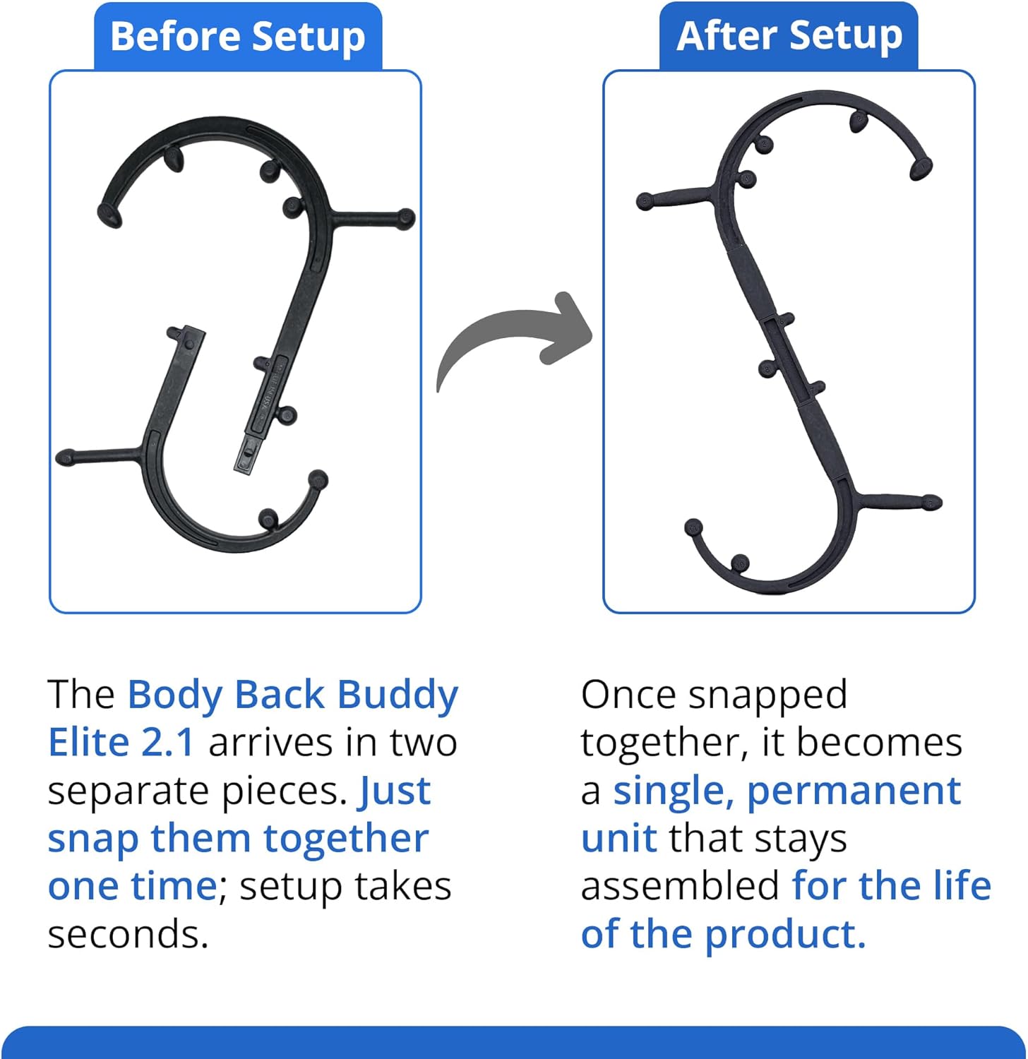 - No Breaking or Bending- The sturdy construction is lab tested to be up to 30% stronger than other therapy canes, so can trust that it wont bend or break. You can see and feel the difference. The new elite ships to you in two pieces, that snap securely in the center using your body weight, with easy-to-follow assembly instructions on the box. Additionally, each Buddy Elite comes with a 2-sided instructional poster that shows you how to target specific pain points.