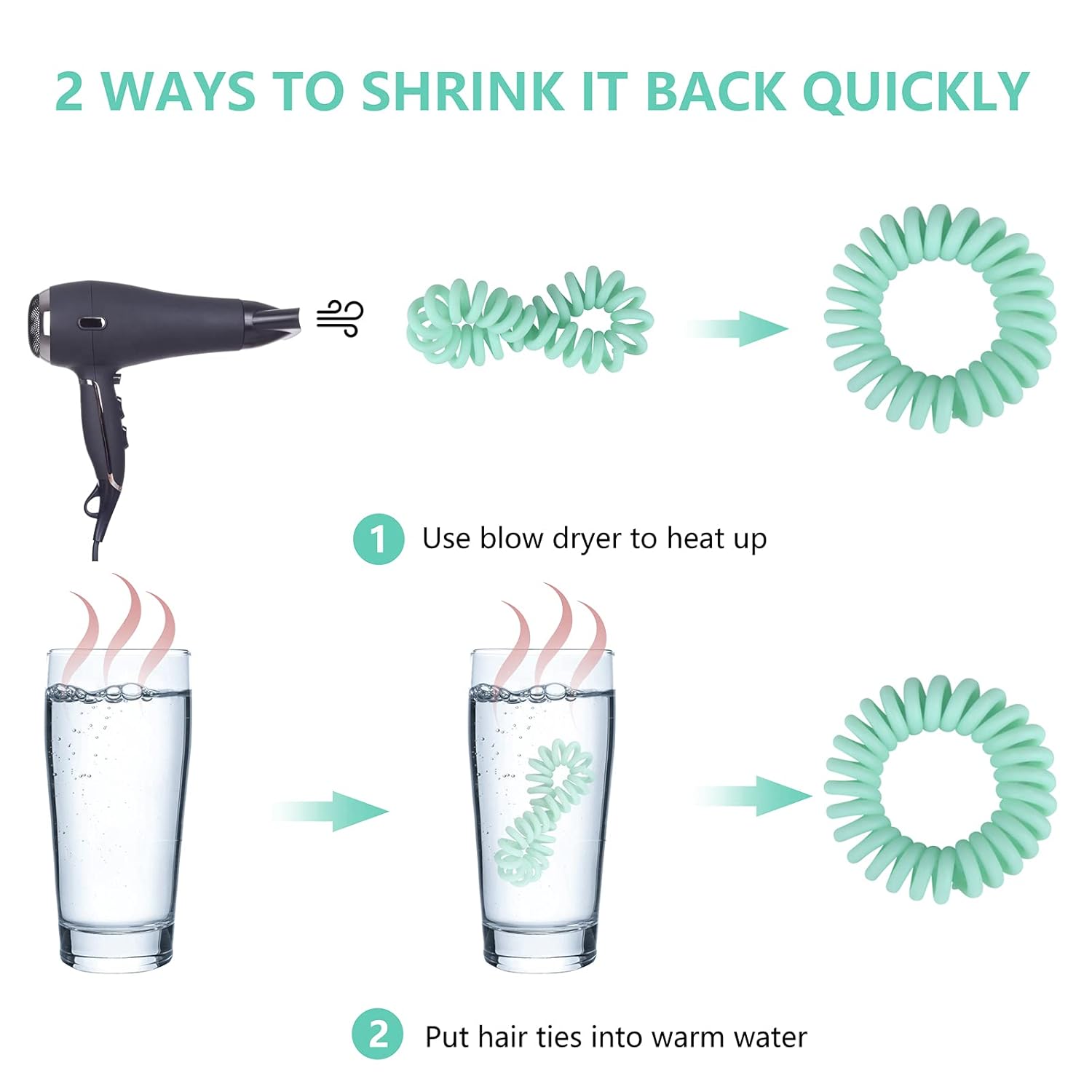 - High Quality Material: This hair elastics for women made of waterproof skin-friendly TPU, which is soft, durable and flexible. These spiral hair ties for thick hair & hair coil ties not only fixed the hair firmly also not hurt for your hair.