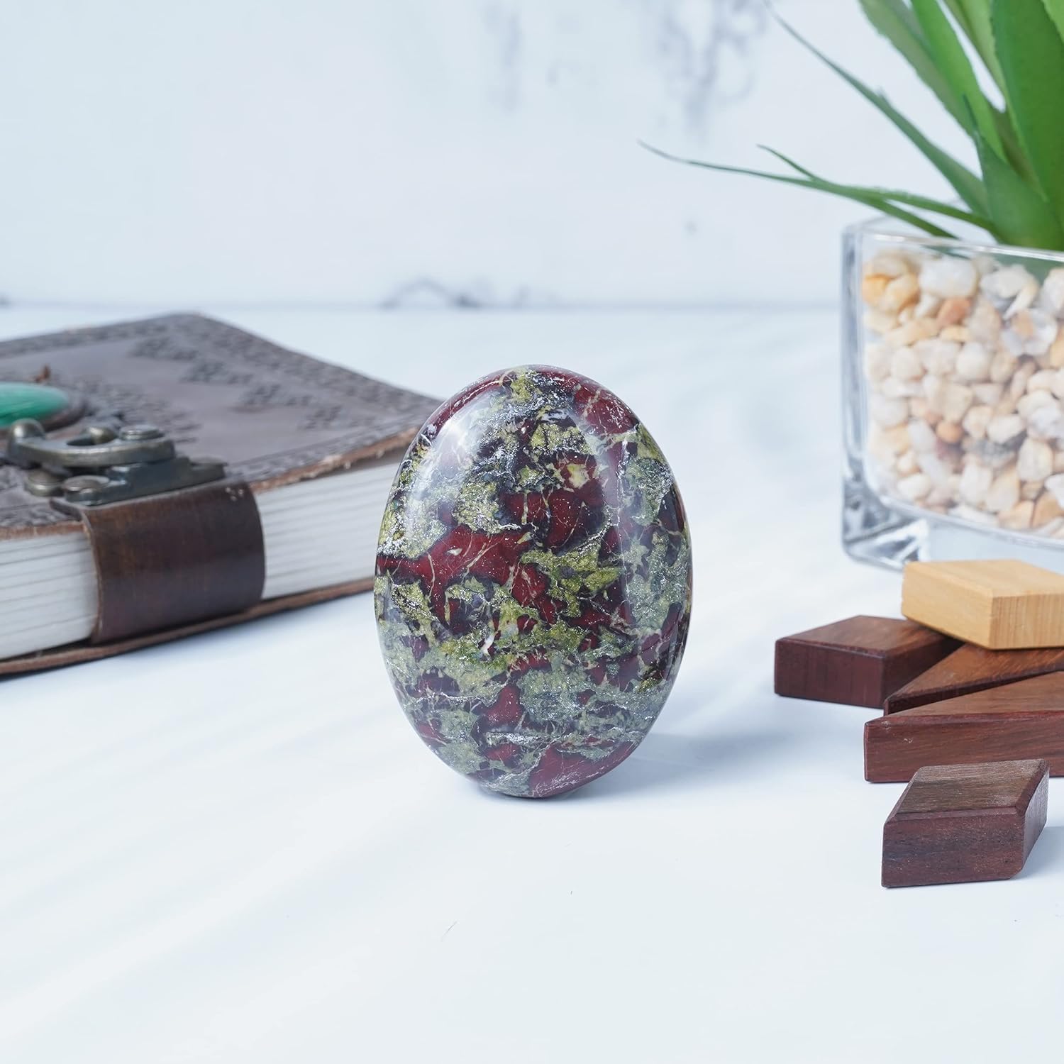 Crocon 50mm Dragon Bloodstone Large Oval Palm Stone 900+ Carats Pocket Massage Worry Stones for Natural Body Chakra Balancing Reiki Healing Stones and Crystal Grid Healing Massage Spa Energy Crystals