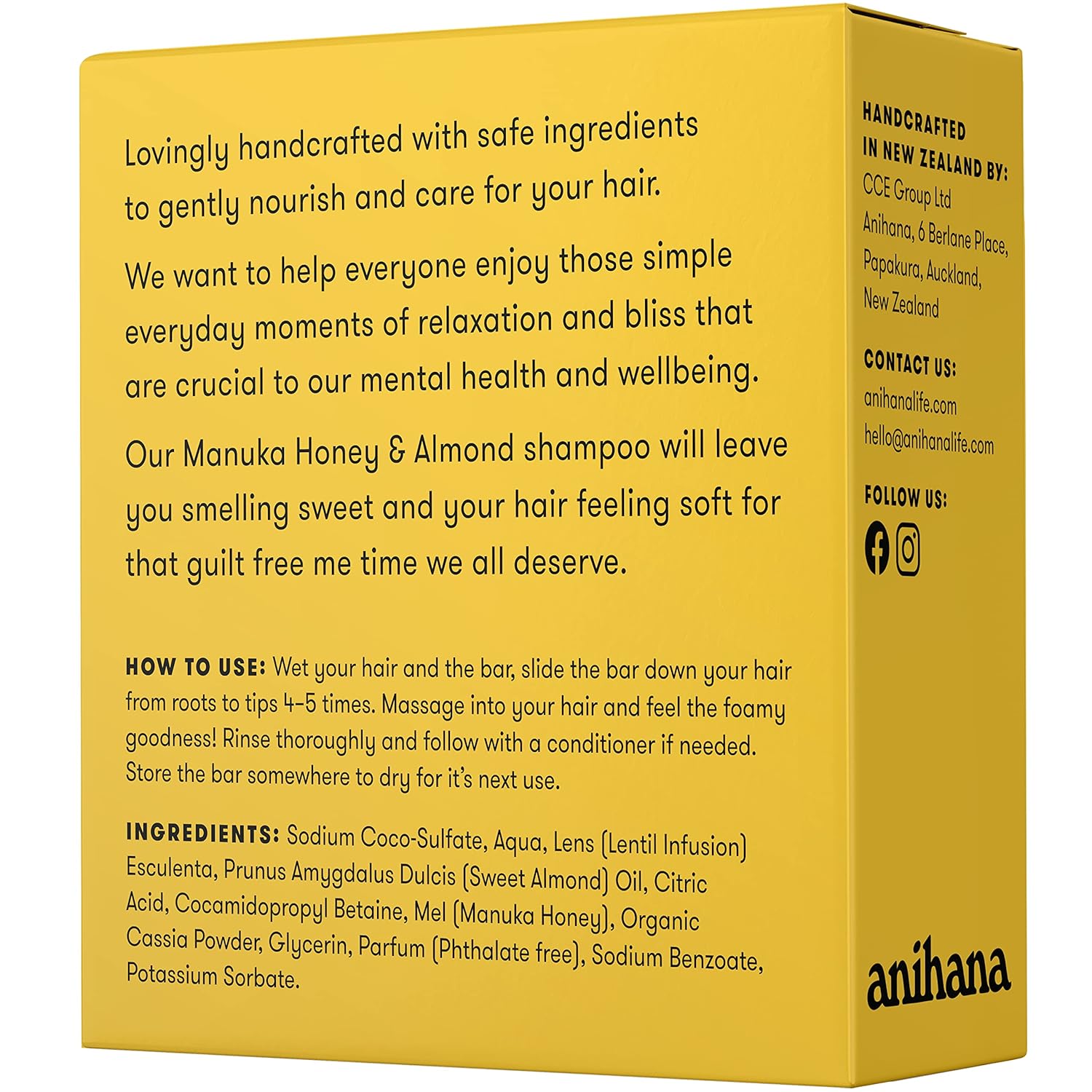 - MANUKA HONEY & ALMOND: Introducing Anihana shampoo bar infused with manuka honey and almond with a delightful fragrance, leaving your hair smelling fresh and revitalized without overwhelming your senses