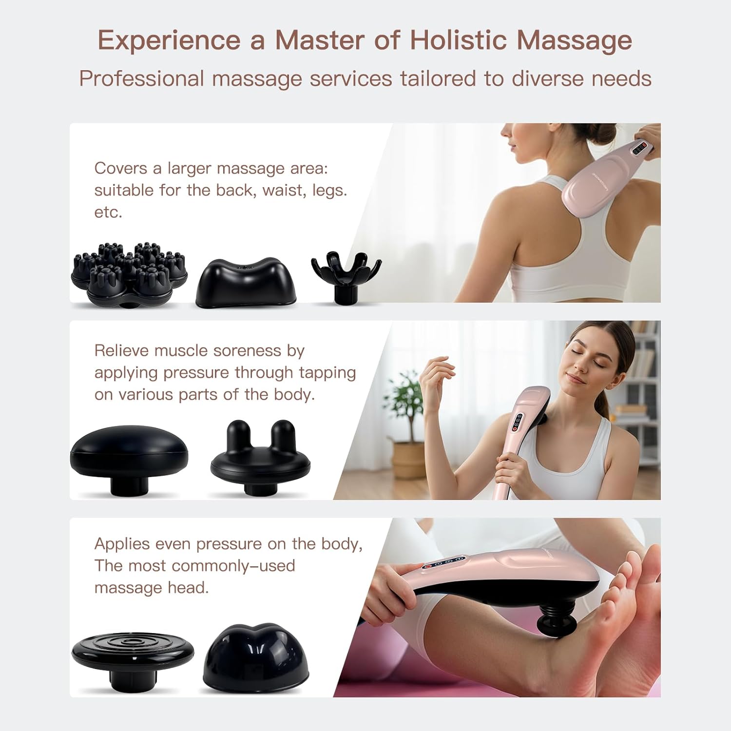 MEGAWISE Handheld Back Massager | Deep Tissue Percussion Massage for Back, Neck, Shoulders, Waist and Legs (Rose Gold)